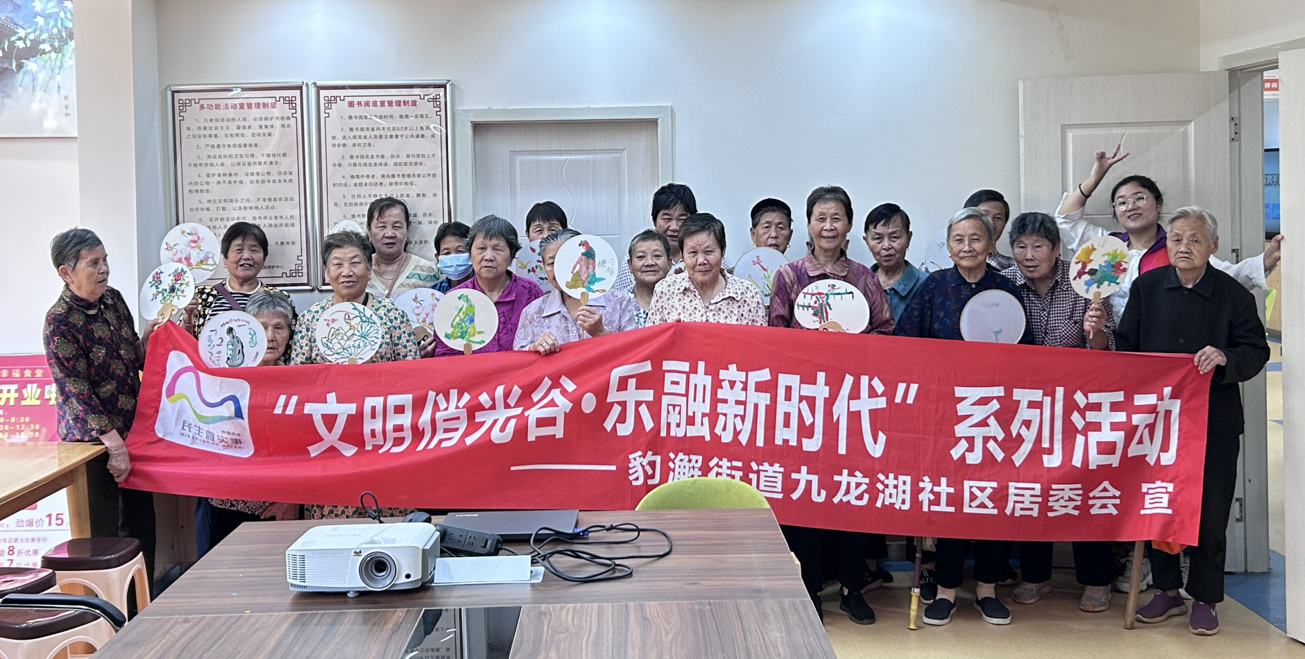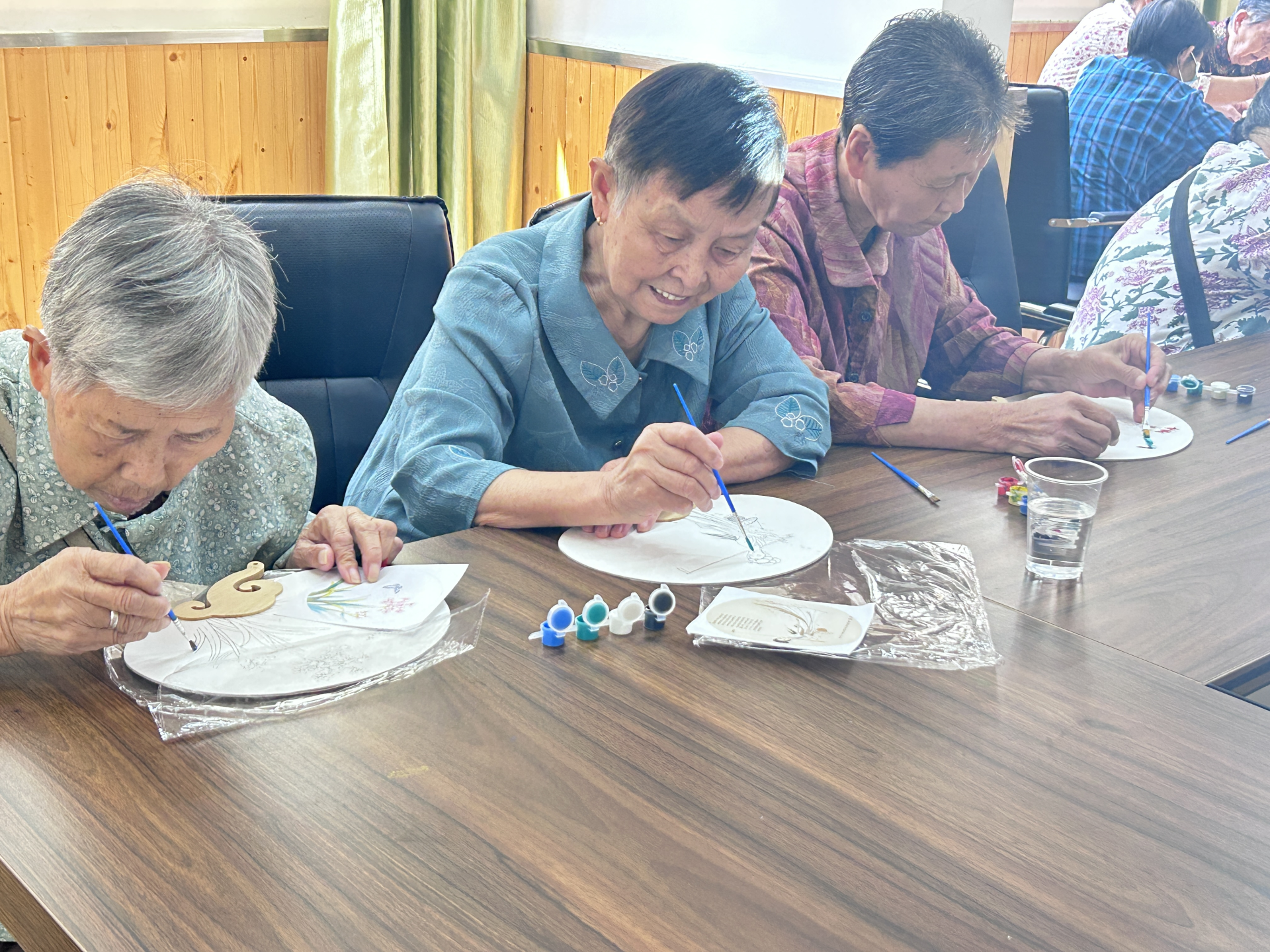 活动中,老师还带领大家手工绘制团扇,在体验手工乐趣中感受非遗文化魅力,居民们拿着颜料和绘画工具,对团扇进行构图、描摹、上色。不一会儿,一把把独具一格、古色古香的的精美团扇就呈现在了大家面前。大家马上现学现用,纷纷拿起手机拍摄,将课堂上学到的摄影技巧运用到实践中来,拍出一张张美丽的团扇照片,在实践拍照中,大家逐步掌握拍摄的技巧。
