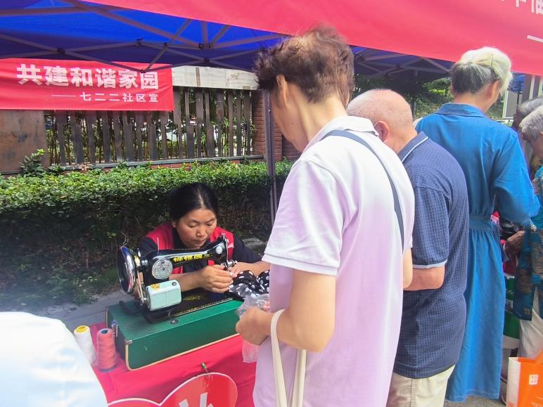 在活动中,不仅有专业的服务人员,还有社区居民自愿参与,积极为社区提供力所能及的帮助。大家自觉排队领券,找到对应的项目,旁边还有不少居民指引解说活动项目和流程。这种互助互爱的精神不仅为社区带来了更多的便利,也拉近了居民之间的距离,形成了一个更加紧密团结的社区。其中,磨刀和衣服缝补成了这次活动的“爆款”项目,参加活动的廖爷爷说:“像磨刀磨剪子这样手艺人在如今的街边是越来越难找了,这次社区能举办这次活动,帮助大家把旧东西又变新东西,实在是太棒了!”