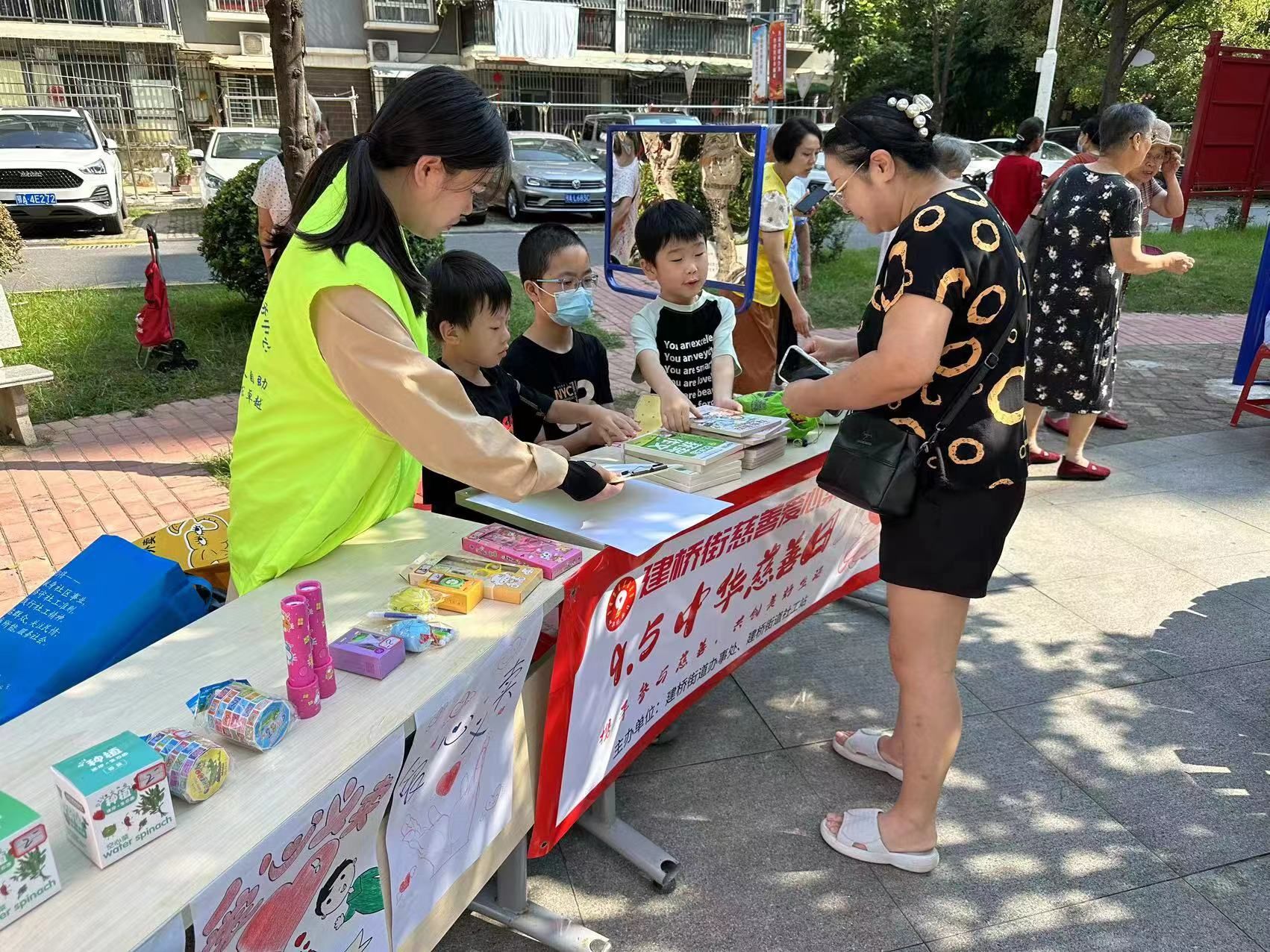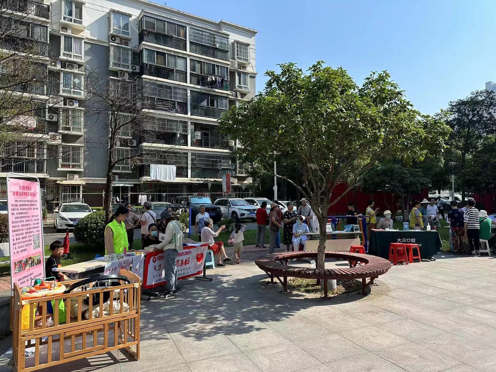活动当天,冰塘社区文化广场上热闹非凡,医务志愿者们为社区居民提供义诊服务,免费为居民群众测血糖、血压、视力检测等,并在现场提供免费健康咨询。刚测完血糖的王阿姨说:“这种义诊服务相当得好啊,居民都不用出小区,是在家门口就能享受到的服务,照顾到了腿脚不便的老年群体。”社区工作人员还在现场设置了青少年公益集市,鼓励青少年们将闲置的书本和玩具进行公益义卖,所得收入以家庭名义捐赠社区慈善冠名基金。集市一“开张”,就吸引了一大批青少年驻足,纷纷拿出自家闲置品进行售卖,各位小朋友化身义卖“小摊主”,装扮着自己的摊位,嘴里还不停吆喝着:“走过路过千万别错过,都来瞧一瞧,看一看。”秋日里,人声中,义卖现场尽显浓浓烟火气,交织着慢慢社区人情味。