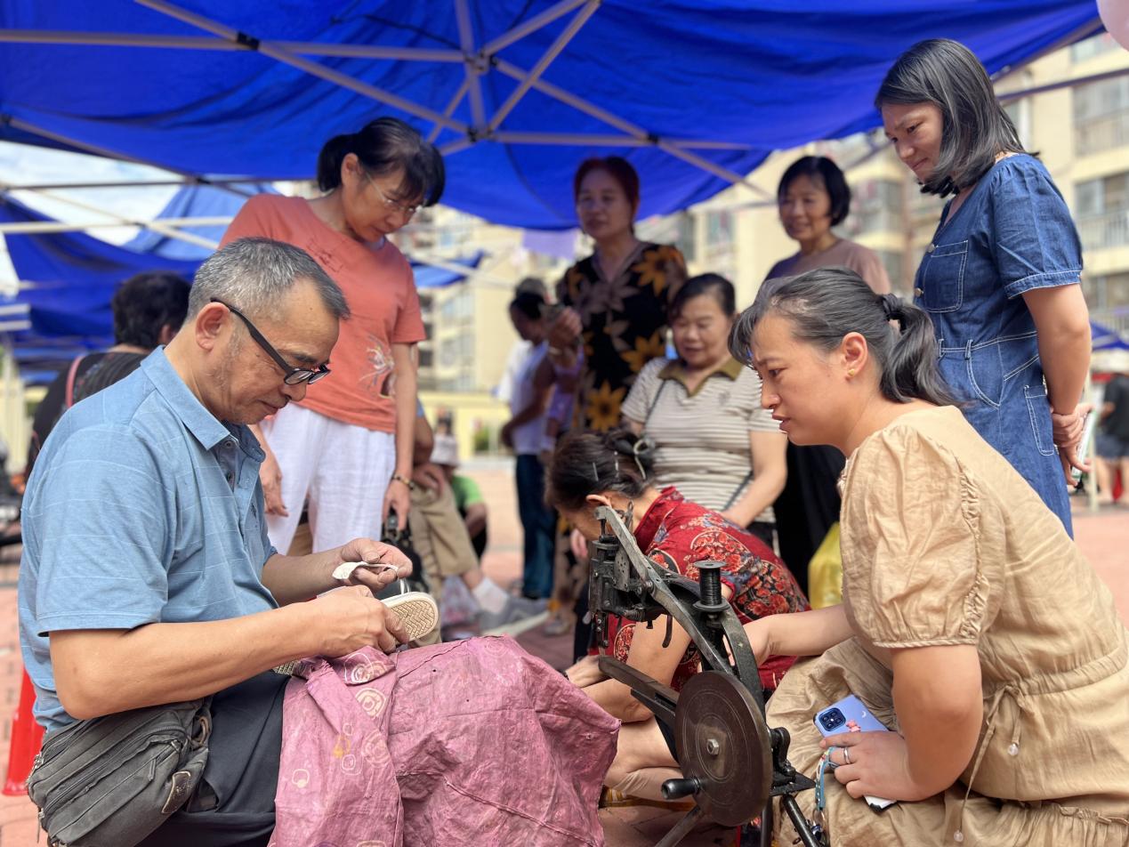 活动现场还开办了便民服务集市,为居民提供理发、修鞋、修伞、磨刀等便民服务,往来居民络绎不绝。在这些能工巧匠的帮助下,大家带来的旧物件全部焕然一新,拿在手里乐的合不拢嘴,直夸社区的服务贴心。