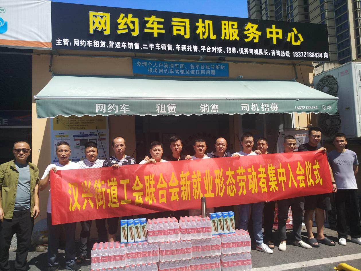 近日,武汉市江汉区汉兴街道党工委、工会联合会在汉兴街道民航里社区友盛网约车司机服务中心为网约车司机集中办理入会仪式,20余名网约车司机利用充电休息时间,陆续参加了本次加入工会的活动。