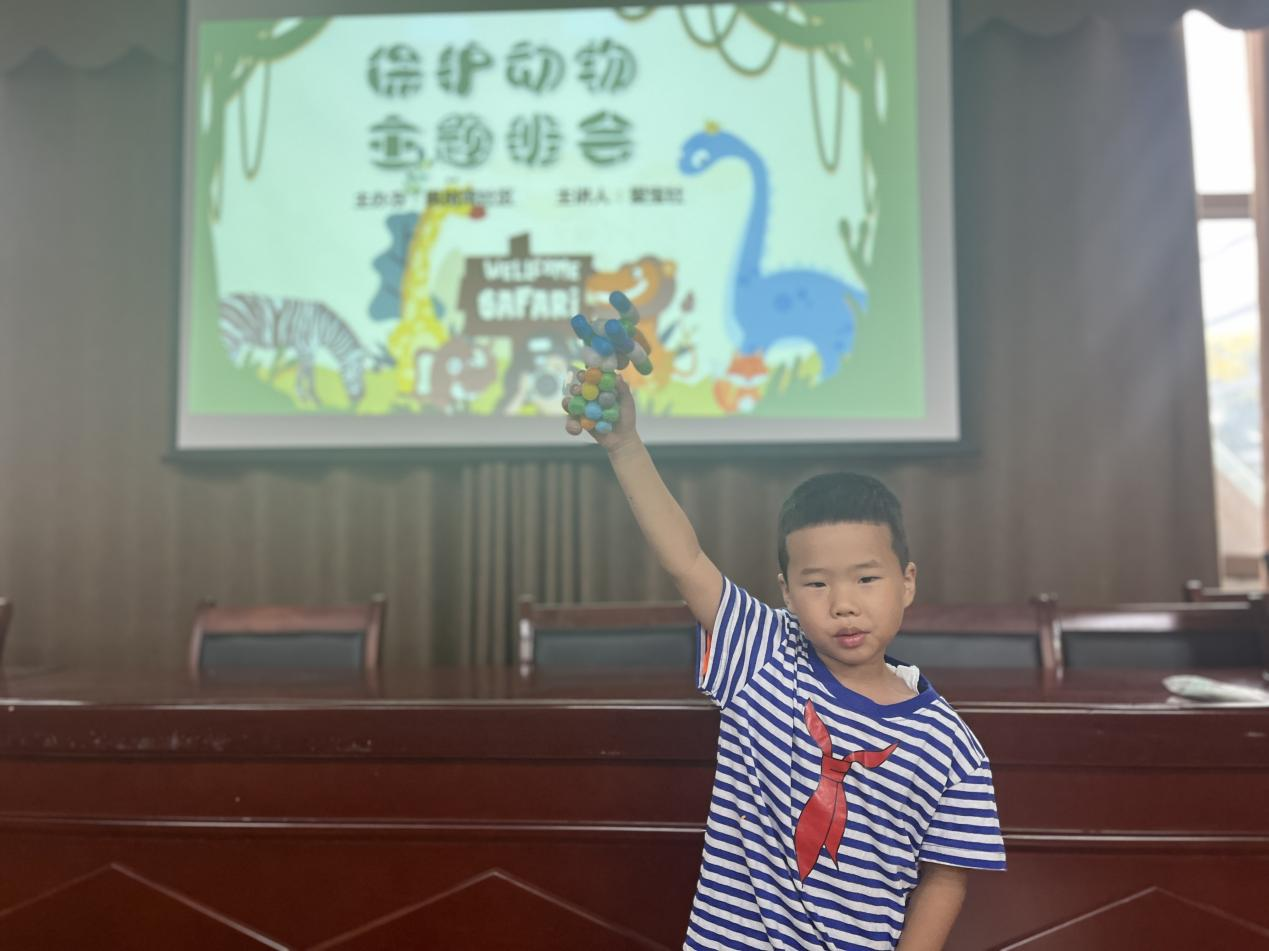 讲解结束后是手工DIY环节,志愿者老师给每个小朋友们分发了魔法玉米粒手工材料包,志愿者老师简单介绍了材料的特点和使用方法后小朋友们兴致勃勃地动起手来,不一会儿,一只只可爱十足的小动物诞生了,有大河马、鳄鱼、狮子、螃蟹、青蛙……一位小朋友开心地展示自己的作品:“我做的是白鳍豚,它是我们国家的一级保护动物,我希望大家可以一起保护环境,保护白鳍豚的家园!”