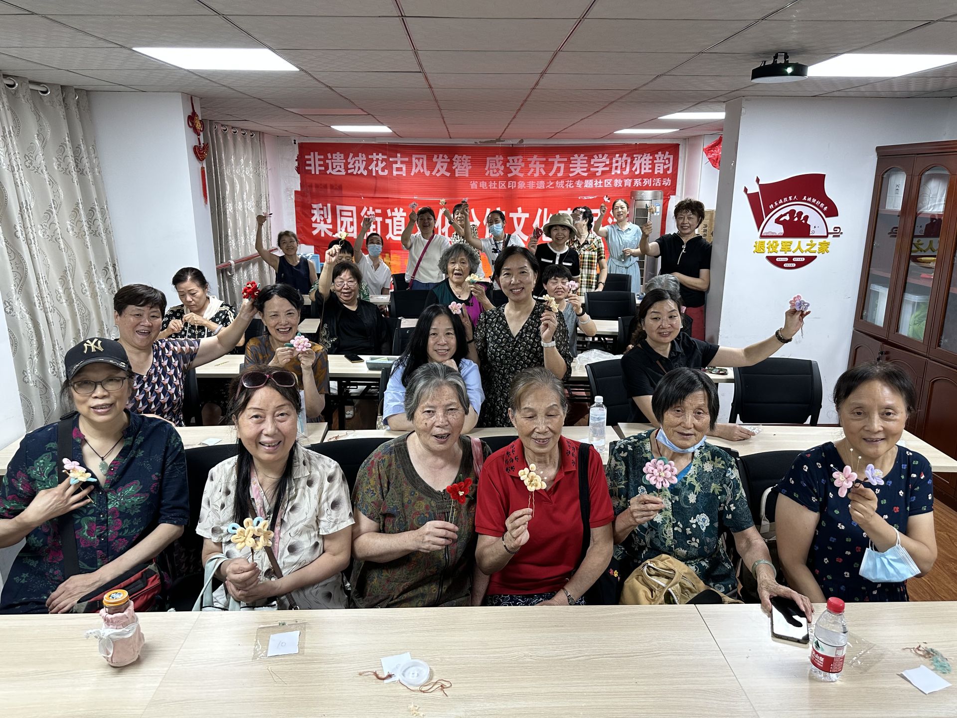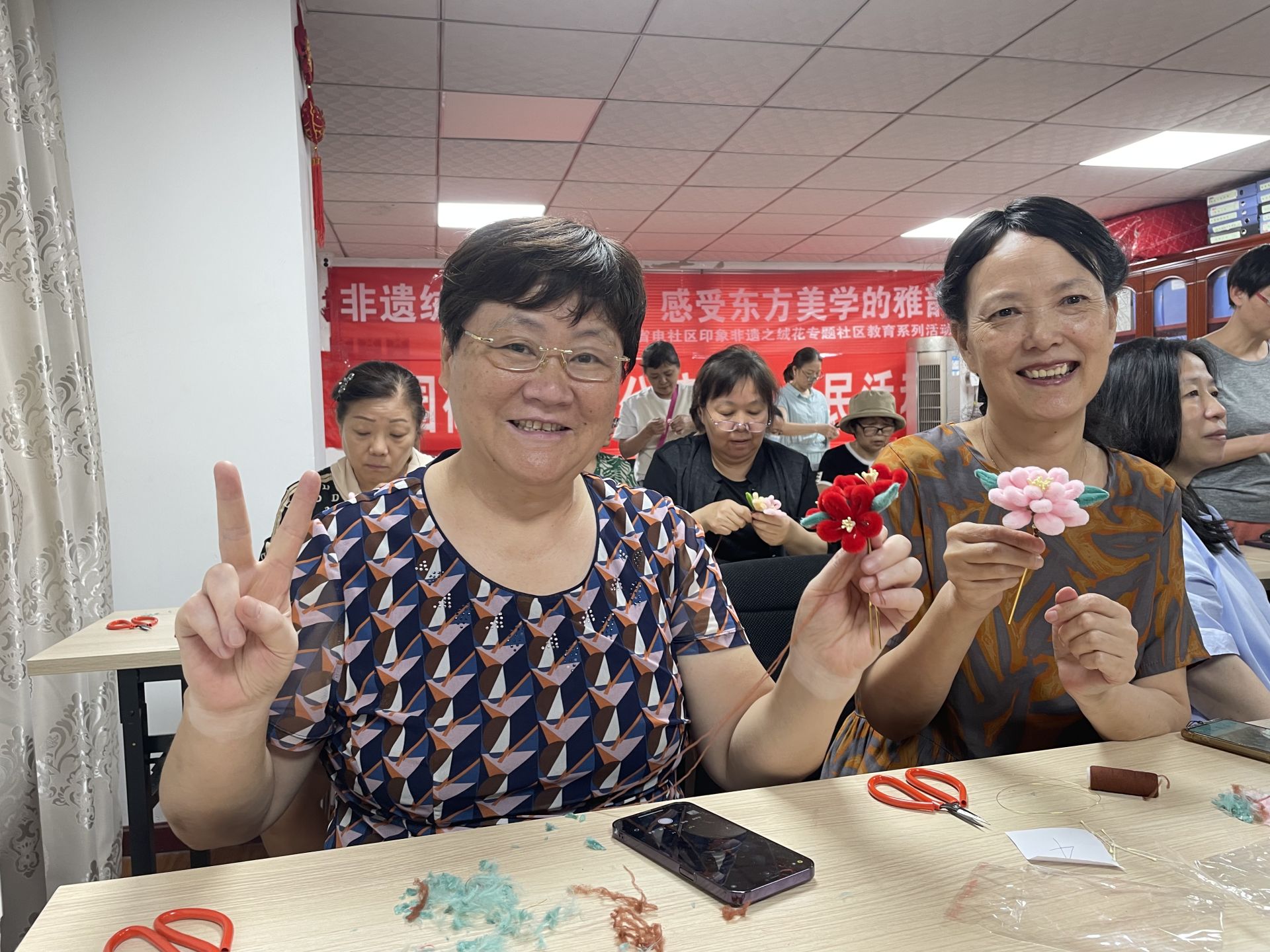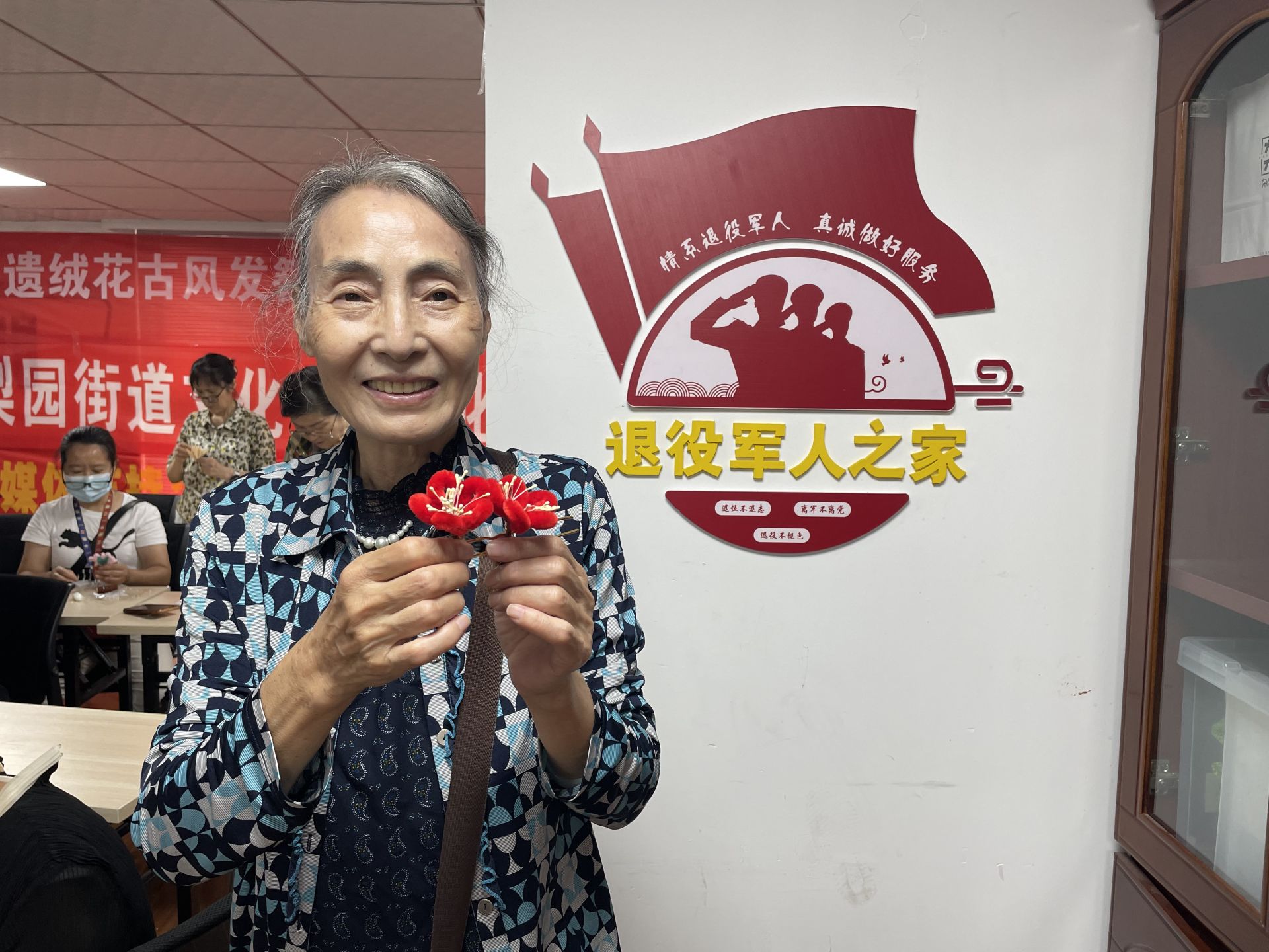 “本来觉得自己粗手笨脚的,不可能做出这么精巧的首饰,但跟着老师细致地讲解,我也完成了!”刘奶奶一边展示手上的绒花,一边略带自豪地说。
