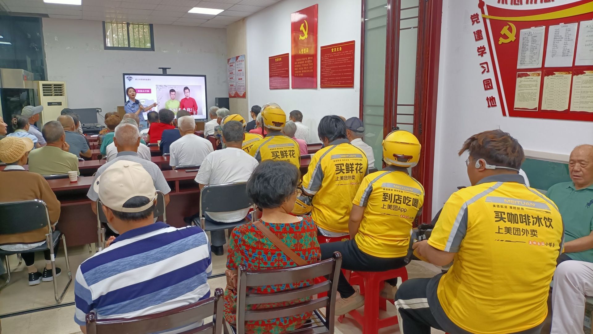 为进一步落实反诈骗宣传工作,有效增强辖区居民防诈意识和防范能力,减少因此带来的经济损失,9月7日上午,武汉市硚口区古田街道古三社区开展全民反诈宣讲活动,武汉市公安局硚口分局人口大队民警向辖区居民讲解电信诈骗的类型和特点,提醒居民做好防范措施,来自美团外卖的小哥们同辖区居民一起参与了本次宣讲活动。
