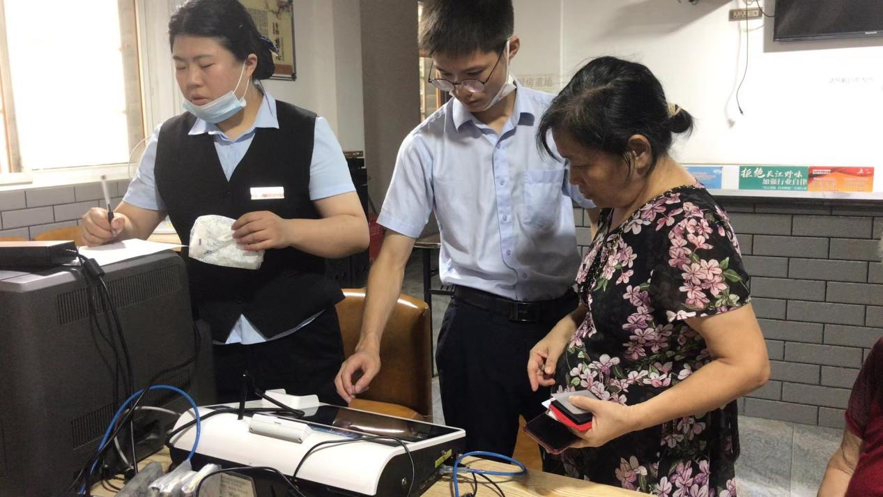“婆婆,社保卡更换不需要跑银行了,现在在我们这里就可以直接更换了”,用了短短几分钟,工作人员就将更换好的新卡递到了婆婆手上。“阿姨您别着急,我来帮您复印好,把信息备注好,您就放心吧。”银行工作人员及社区志愿者给前来办理医保卡的居民复印资料、耐心讲解疑问。