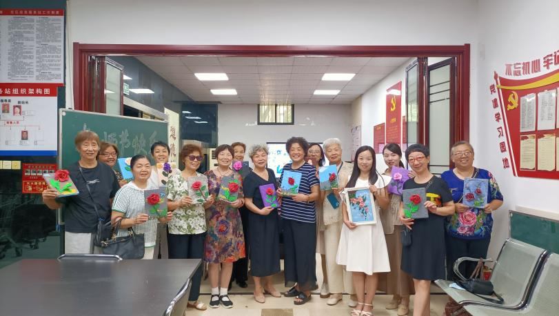 在手工黏土画制作环节,社区志愿者为教师们发放了制作材料,并向大家展示了此次手工活动的作品模板,美丽的向日葵、枫叶树、水粉的百合花、鲜艳的玫瑰,象征着教师桃李满芬芳。