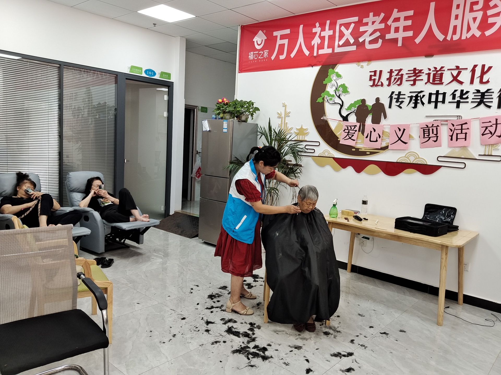 秋意凉凉,温暖常在。为了让辖区居民尤其是行动不便的老人和残疾人享受到免费剪发的便民服务,9月7日上午,武汉市硚口区古田街万人社区党委联合国药福芯在社区老年人活动站举办了“‘情暖金秋爱心义剪暖民心’志愿服务”活动,为辖区内党员、群众进行爱心义务剪发。