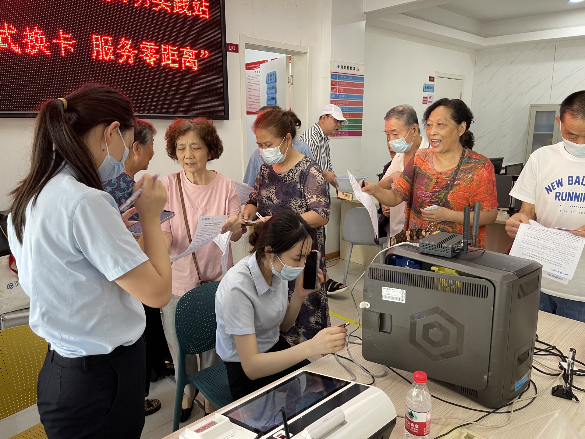 为进一步深入开展“我为群众办实事”行动,全面推进第三代社保卡换发更新工作,9月6日,武汉市江岸区花桥街花桥社区新时代文明实践站联合汉口银行开展便民服务进社区免费升级三代社保卡活动。