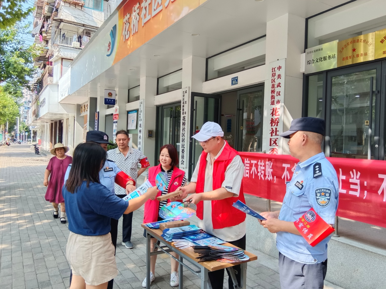 为进一步增强全民反诈意识,从源头遏制电诈高发态势,有效保护人民群众财产安全,9月7日下午,武汉市公安局江岸分局花桥街花桥派出所联合武汉市江岸区花桥街花桥社区新时代文明实践站开展反诈宣传活动,增强人民群众反诈防骗意识和能力,守护群众的“钱袋子”。