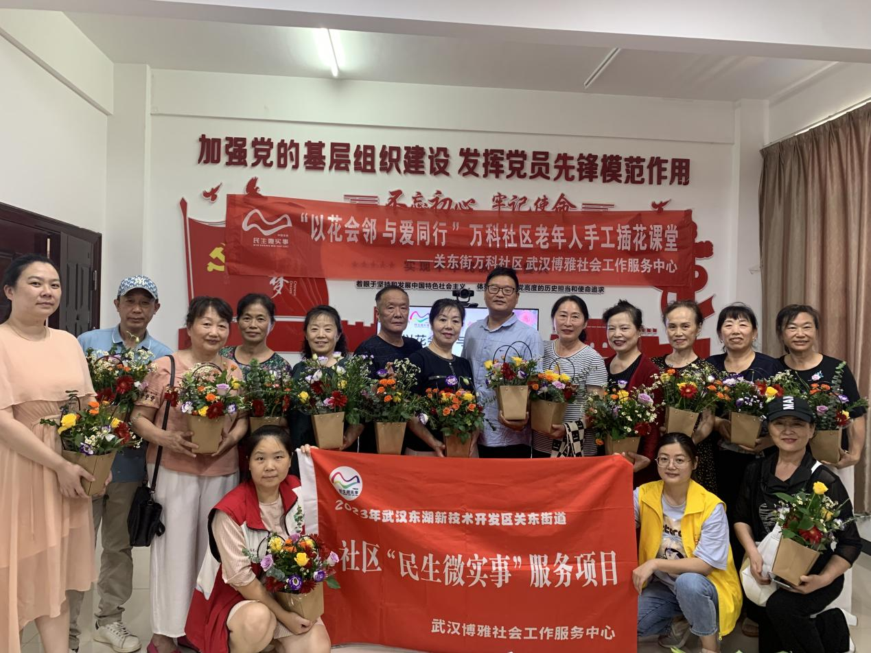 9月6日上午,武汉东湖高新区关东街道万科社区“以花会邻”插花兴趣课堂开课啦!邀请社区居民一同遇见“浪漫”。