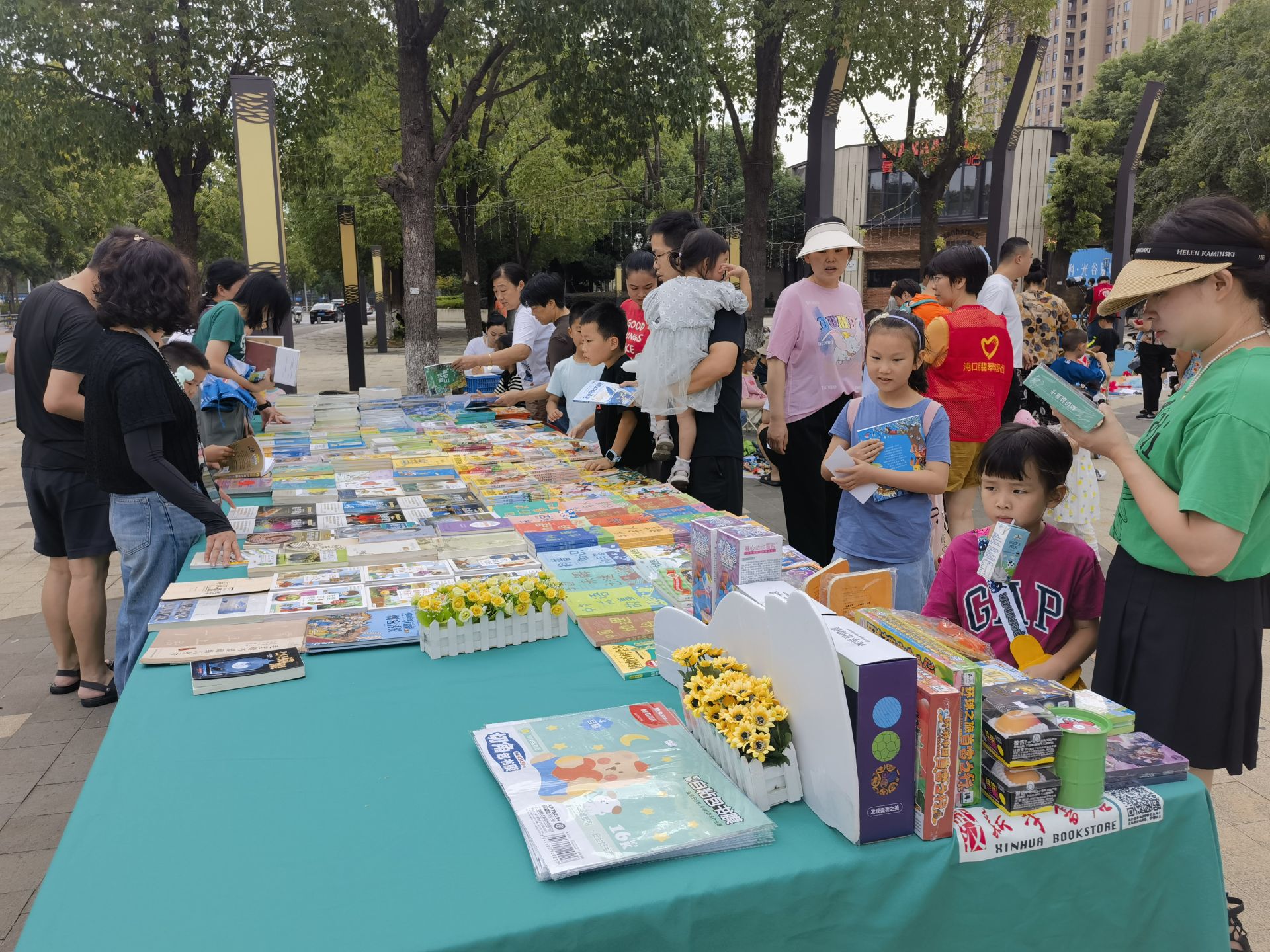 活动现场,社工向家长们宣传防溺水安全知识和“双减”政策,沌口书店为居民们带来了一批优秀儿童读物及世界名著图书进行惠民促销,吸引了大量居民前来购买。