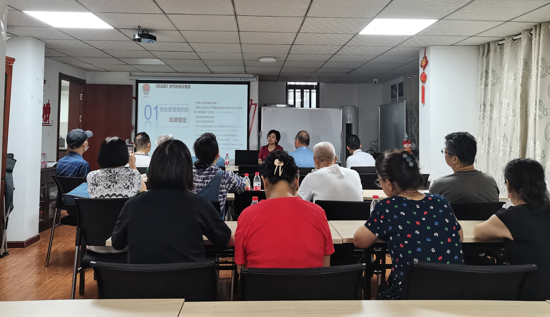 为了更好地、规范化地为小区进行物业服务,创新社区治理和物业管理融合模式,充分发挥居民的自治作用,9月8日下午,首届《民法典》培训会在武汉市洪山区梨园街道省电社区党群服务中心拉开了序幕,辖区居民骨干代表30余人参加了本次会次。会议特别邀请专业老师为大家讲解物业选聘流程、物业服务及公共收益管理。通过学习法律法规,规范业委会工作流程,加强大家学习依法管理小区和维护业主合法权益。