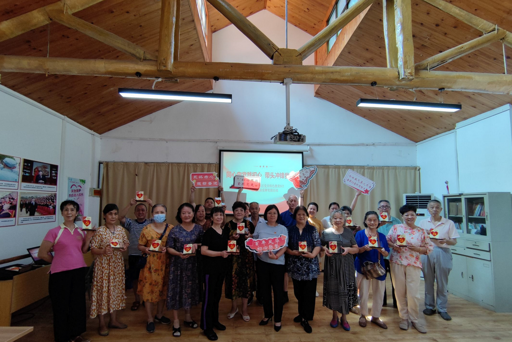 活动尾声,社区党员们挽起手来,拿着亲手制作的红色手作合影留念。