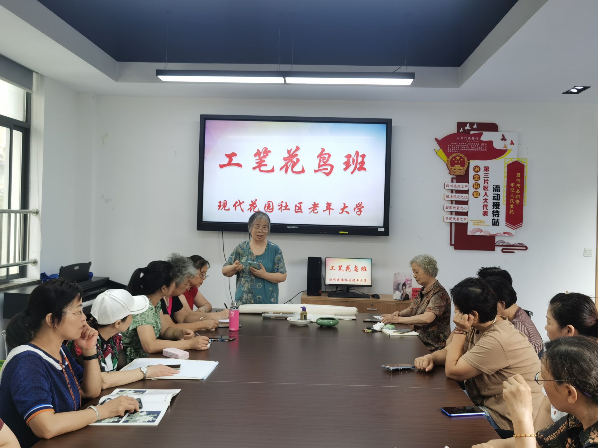 为进一步丰富辖区内老年人精神文化生活,在区委老干局和街道党工委的关心支持下,现代花园社区充分利用社区党群服务中心阵地资源,邀请专业老师,开设广场舞、工笔画、园艺科普、葫芦丝等课程,让老年人在“家门口”享受高质量教育服务。
