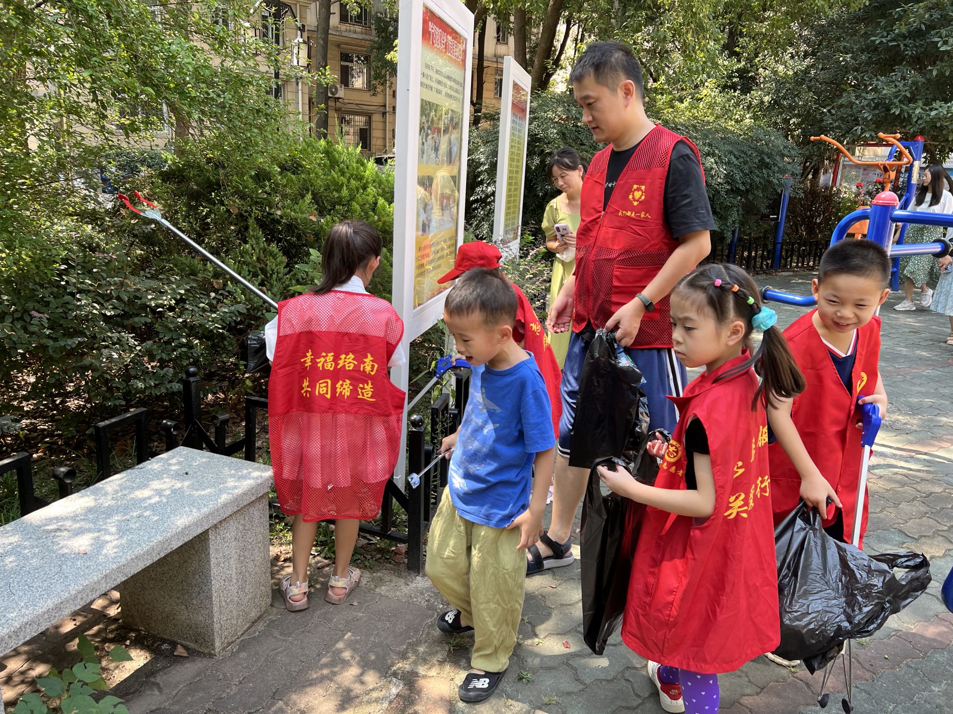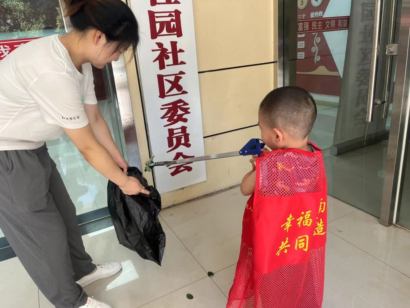 活动开始时,每个居民都穿上了志愿者小马甲,社区为大家准备好了垃圾夹和垃圾袋。孩子们特别积极,迫不及待地开始四处搜寻垃圾。他们在社区内巡视,将分散的垃圾捡拾并放入垃圾袋中。这不仅是一次清洁环境的行动,也是对垃圾分类和环保意识的实践。家长们在一旁不仅是垃圾捡拾者,更是孩子们的环保教育者。他们鼓励孩子们保护社区的环境,不乱扔垃圾,并讲解垃圾分类的重要性。这个过程不仅增进了亲子关系,也培养了孩子们的环保意识。