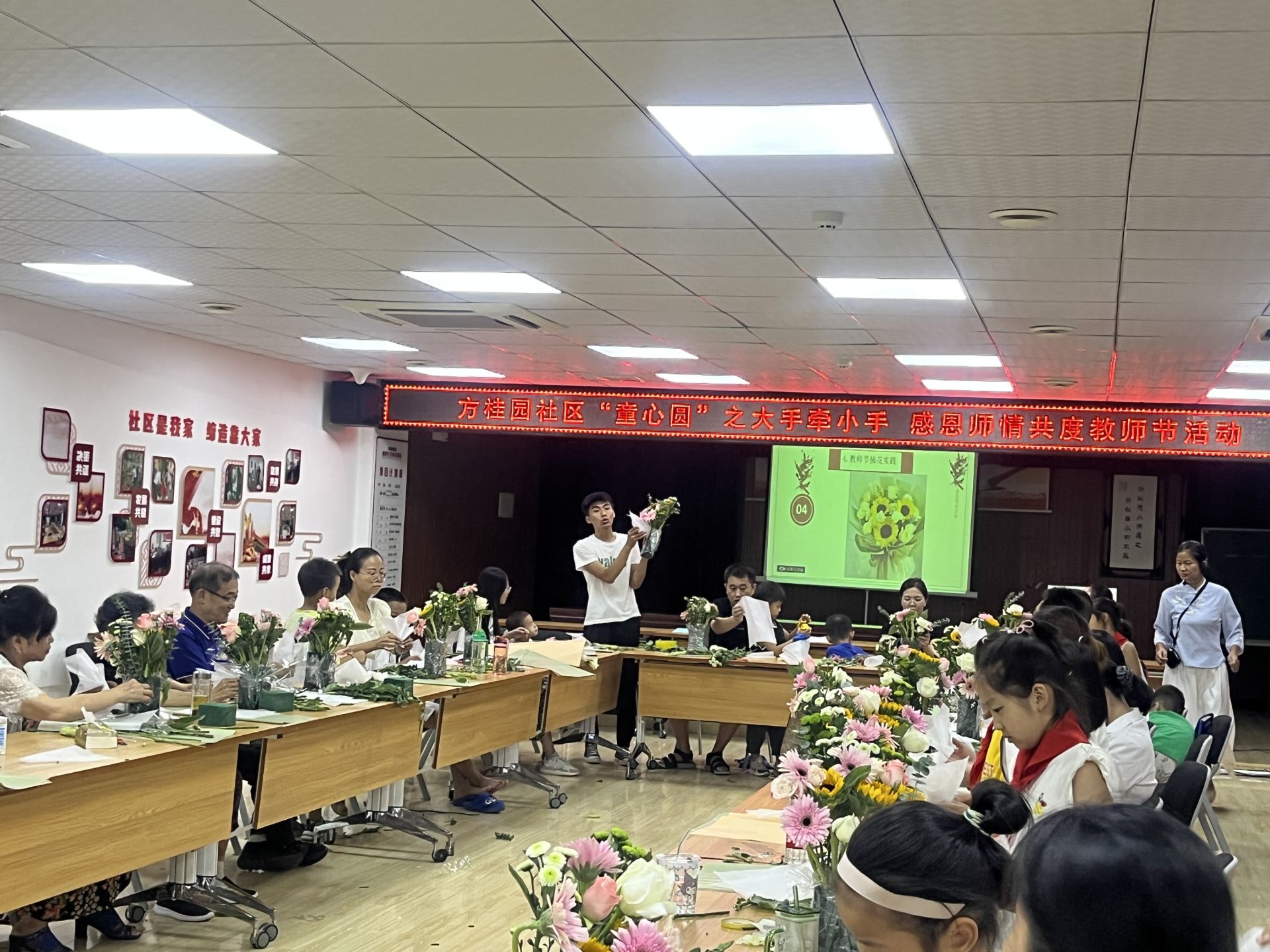 2023年9月10日是第39个教师节,在教师节来临之际,武汉市洪山区珞南街道方桂园社区举办了一场感恩教师的亲子插花活动,以“童心圆”之大手牵小手·感恩师情 共度教师节”为主题。本次活动不仅向教师们表达深深的感激之情,还为社区的孩子们提供了一个难忘的亲子体验。