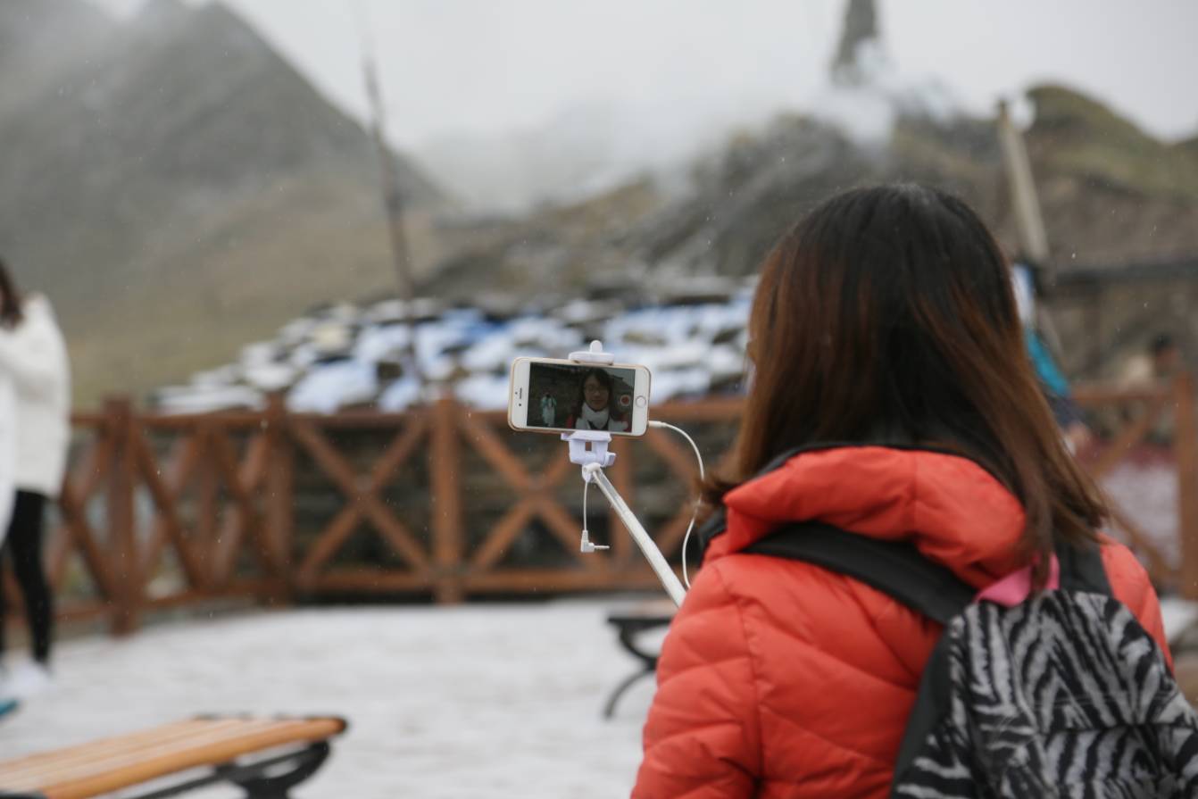 封面新闻记者何晞宇试着爬上一座高不过20米的小土坡都感到气喘嘘嘘。在手机随时都有可能冻关机的状态下,网易编辑许梦娜依然坚持在为网友们直播,带网友们现场感受夹金山的海拔和温度。