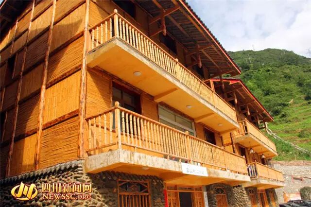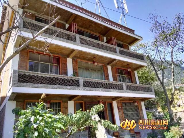 如今,“雪山新村”与宝兴县城隔河而坐,在半山腰上已建立起了一个休闲旅游民俗度假村。村民的房屋采用了传统川西建筑风格,层数一般为2到3层,内部以钢筋混凝土结构为主体,外部以木材、竹片、瓦片和小鹅卵石塑造风貌,与新村背后的青山相衬托,像是一幅幅浓郁的油画。