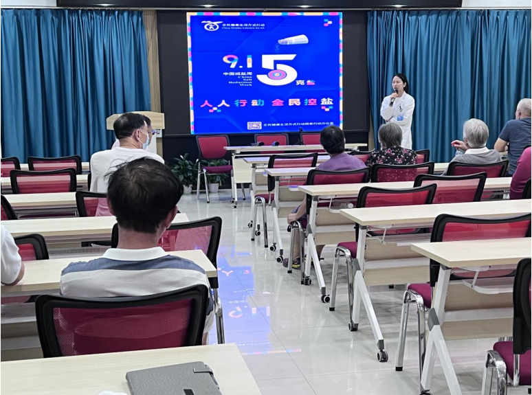 卫生服务中心的吕医生通过展示日常生活中常用调料、食物的含盐量,让大家意识到我们在日常生活的不经意间就容易摄取过量的盐分,从而产生健康隐患。随后又通过列举一系列健康数据,介绍长期过量食盐对身体的危害,最后和大家分享了“就要5克”的减盐理念和生活技巧,引导每个居民根据自己的口味合理调配食盐摄入量,倡导居民改变高盐饮食的不良习惯,形成少盐的健康生活方式。
