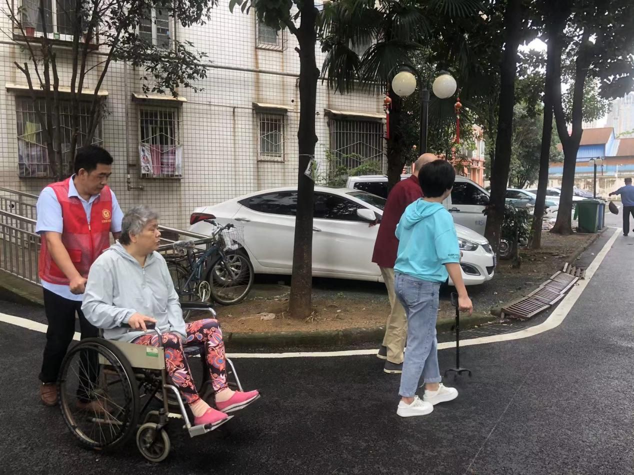 家住武汉市江汉区汉兴街道民航里社区南航花苑小区的彭阿姨和王叔叔属于高龄空巢老人,平时儿女不在身边,出行不太方便。自5月彭婆婆因病做了手术后民航里社区工作人员帮忙联系了汉兴街第二卫生服务中心提供家庭医生上门换药服务,两位老人一直十分感激。在最近一次入户走访时,彭阿姨提出来一个新的诉求:由于彭阿姨年事已高,且患有糖尿病,脚上的伤口反反复复,最近虽有好转,但彭阿姨仍有些不放心,希望能去医院再好好看看。然而王叔叔年纪也比较大,且腿脚不太便利,两个人出门怕发生意外,希望能得到社区的帮助。
