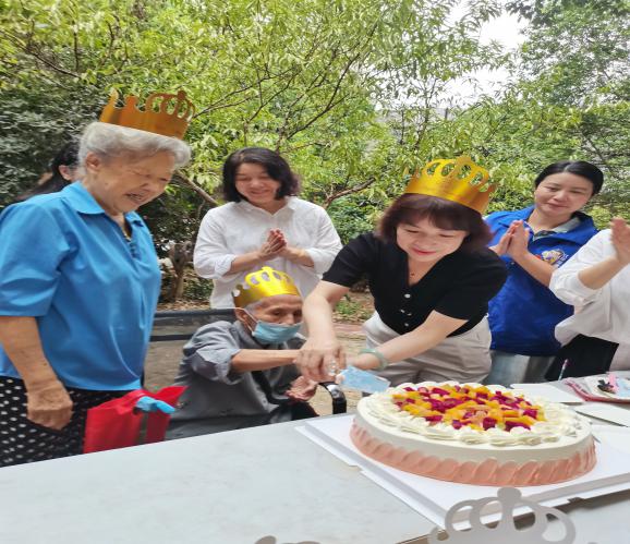 一阵欢声笑语从小区的新修建的休闲亭廊传来,原来一场孝老生日会正在这里举行,戴着金色王冠生日帽的老寿星们精神焕发,脸上洋溢着发自心底的笑意。社区书记在繁忙的事务中抽出时间,来到生日会现场祝福老寿星们健康长寿,她肯定了居民群众对共同缔造创建美好环境与幸福生活美好社区工作的支持,寄语老年人们在享受共同缔造成果的同时,发扬社区主人的精神继续共同维护好社区治理成果,让“五共”理念在美庐社区蓬勃实践,成为持续提升美庐社区的环境美化度和居民群众的幸福感的强大推力。