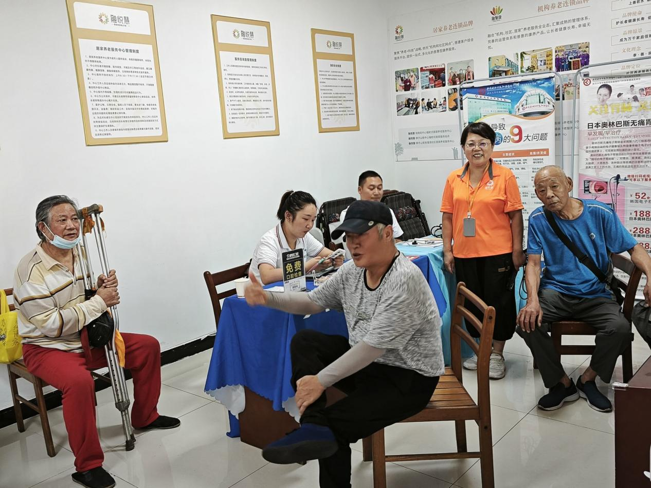 在理发摊位前,居民们对理发师傅精湛的手艺赞叹不已,只见师傅拿着理发器对老人头发上下推理,一个个精致的发型就出来了,老人个个开心不已,纷纷竖起大拇指并表示,这位理发师傅已经在融悦慧居家养老中心服务好几年了,大家都很喜欢赞赏他的手艺。在磨刀摊位区,师傅拿着刀具熟练地上下打磨、上光,一把把光洁如新、锋利的菜刀就出来了。