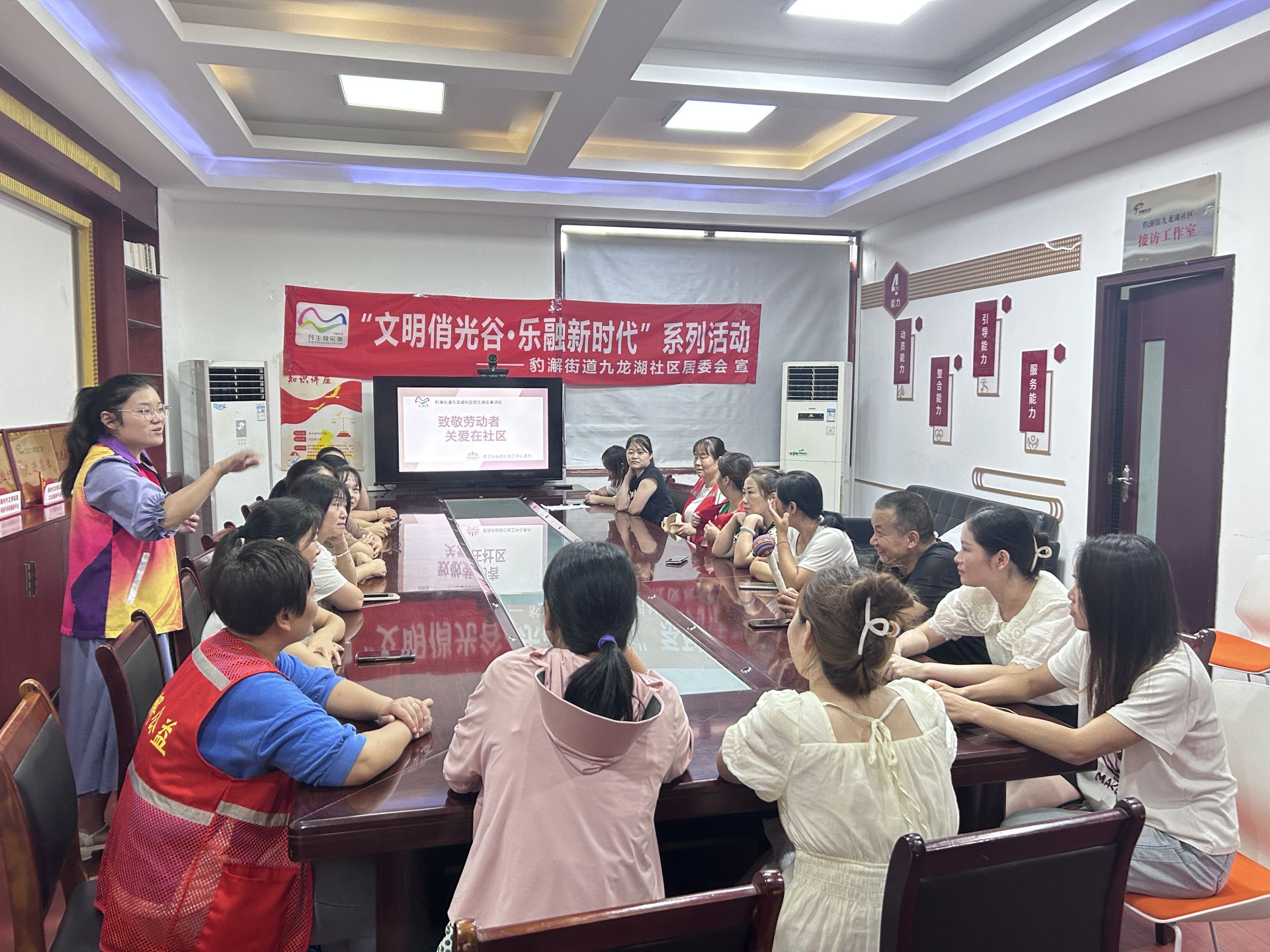 为切实关注劳动者的生活和工作,让劳动者感受到来自社区的温暖和关怀,弘扬劳动精神和社会正能量,9月7日,武汉东湖高新区豹澥街道九龙湖社区新时代文明实践站联合启心社工开展民生微实事项目之“致敬劳动者 关爱在社区”主题活动。