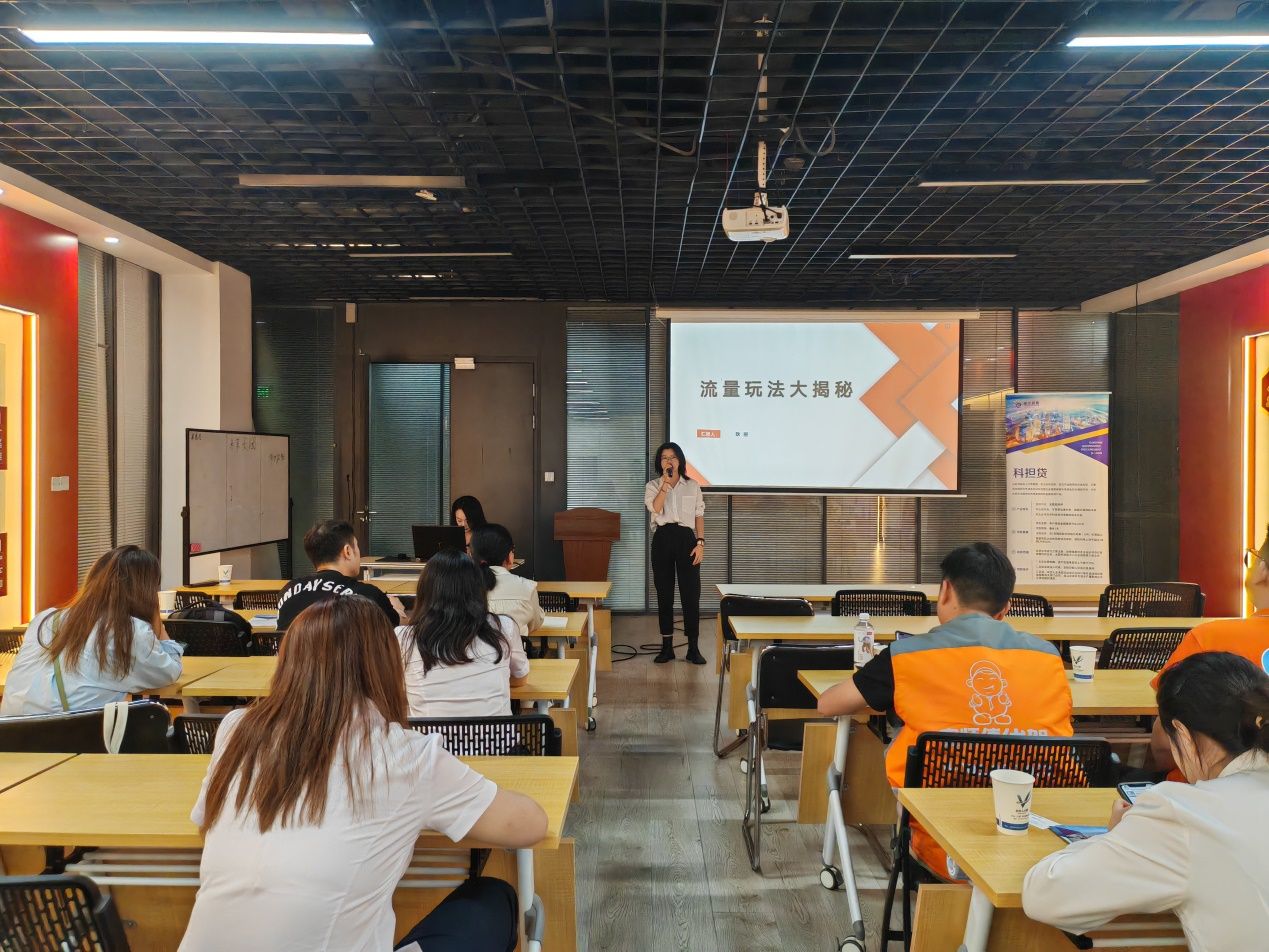 活动现场,来自武汉双创职业培训学校的讲师结合企业的经营与产品推广需求,围绕“抖店”短视频与电商运营等方面进行了经验分享,重点讲解了“产品+”的概念,从内容建设出发,助力企业实现品牌营销与电商销量的规模化协同增长。通过理论与实际案例的结合,使大家深入了解打开流量端口的电商运营技巧。“现在电商直播流量大,我们正巧也想通过直播增加品牌曝光机会,打开产品销路,这次培训真是太及时了!”来自完美公司的舒女士感叹道。