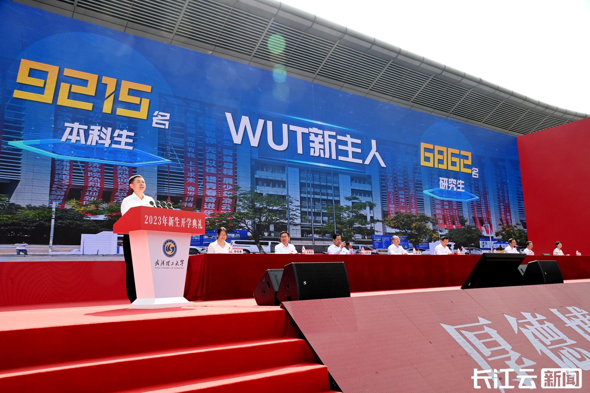 9月15日上午,武汉理工大学2023级新生开学典礼在南湖体育场举行,2023级新生迎来开学第一堂课。武汉理工大学校长杨宗凯以《激扬青春力量 争做时代先锋》为题讲授“开学第一课”。