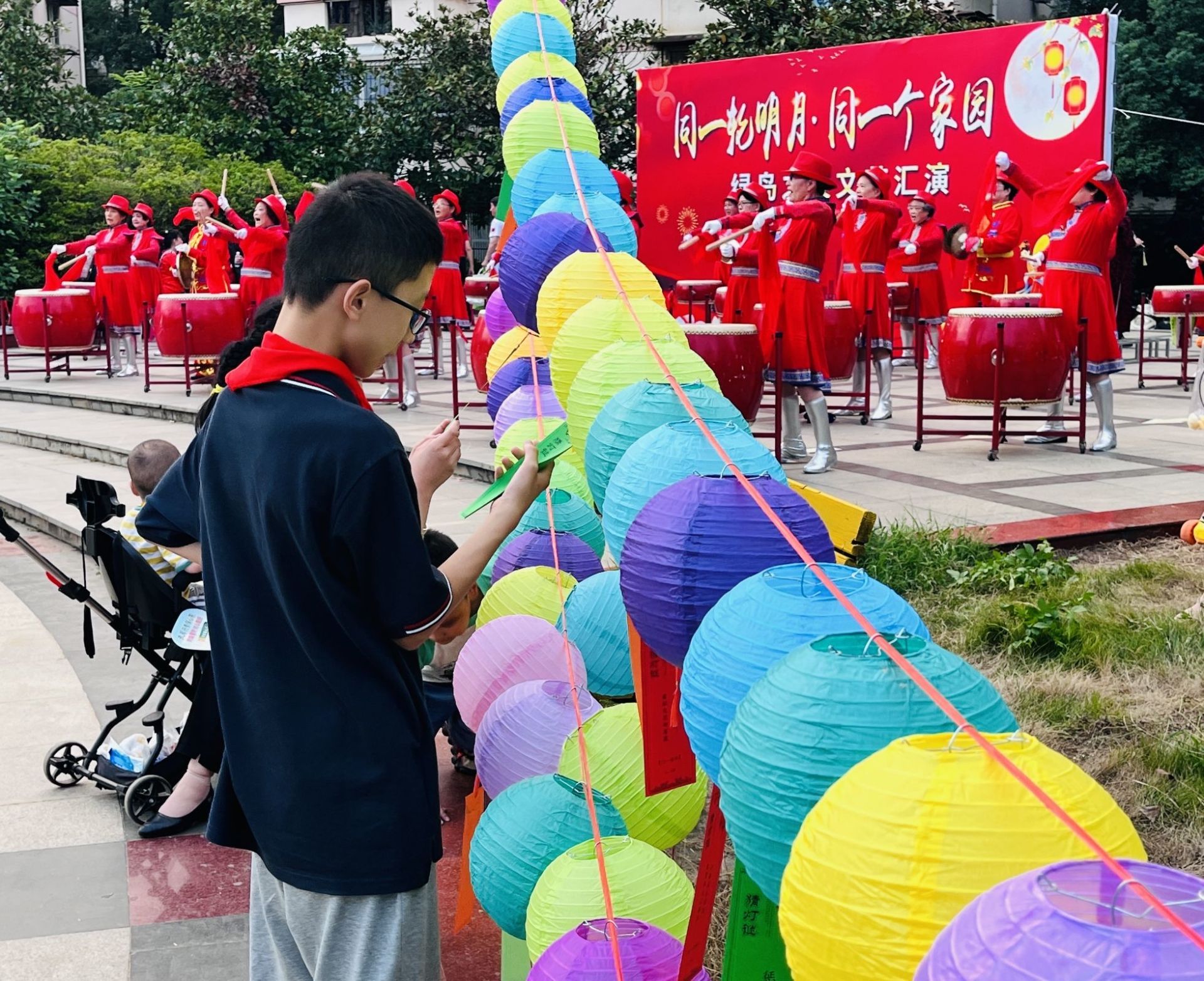 9月15日,武汉经开区沌阳街道绿岛社区在绿岛花园文化广场开展主题为“同一轮明月,同一个家园”的中秋节日活动。“海上生明月,天涯共此时”,在这样一个温馨团圆的美好日子,辖区居民齐聚一堂,共赏明月,同度佳节。