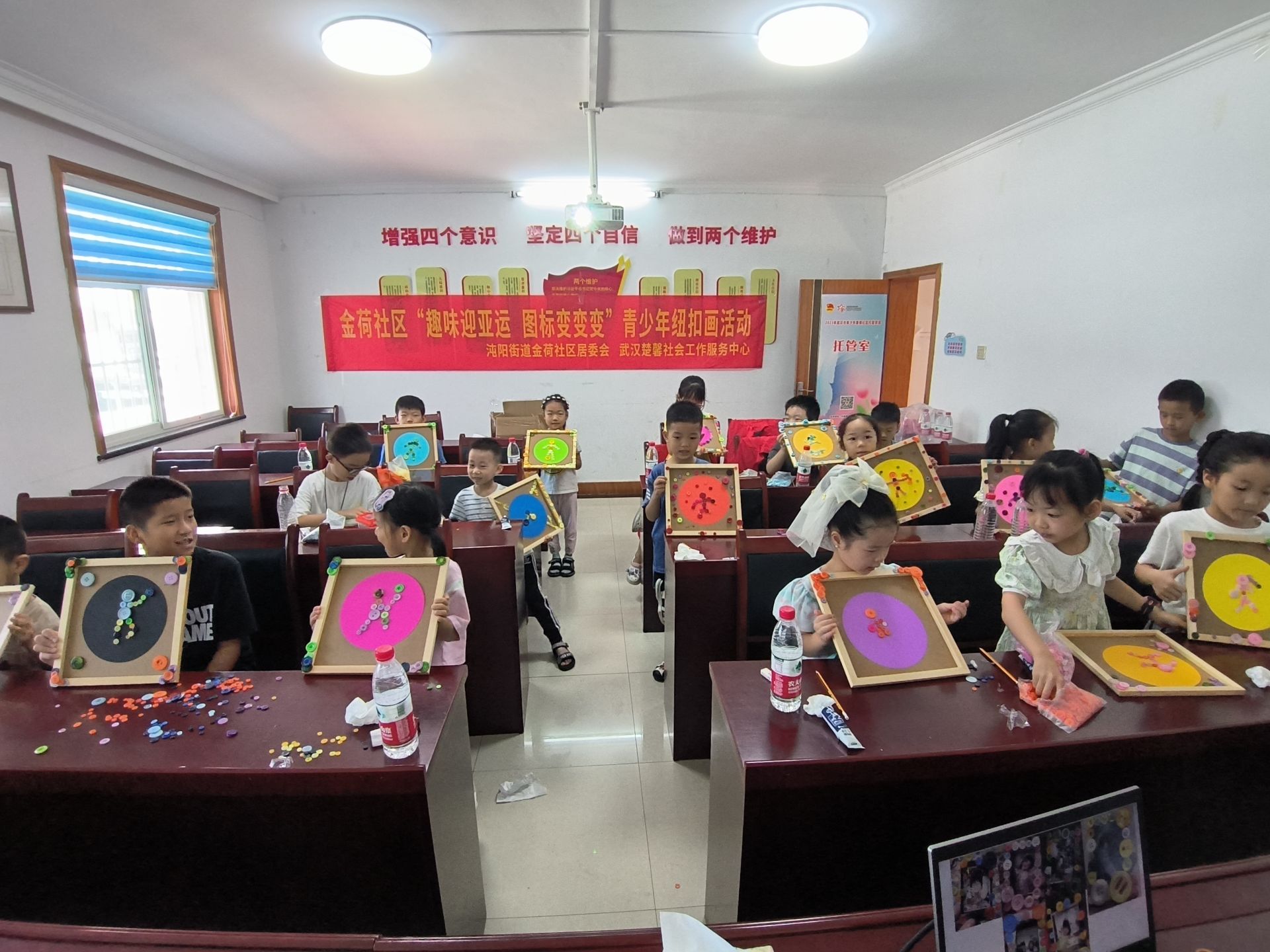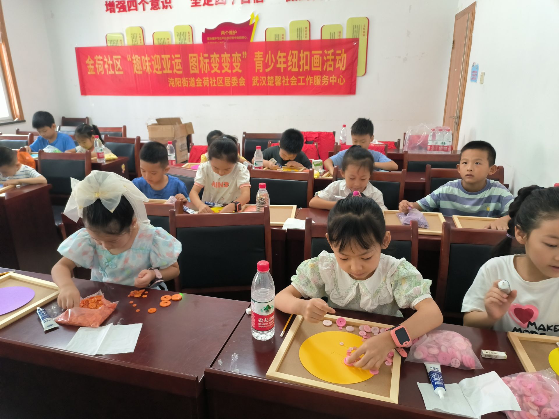 亚运会是亚洲规模最大的综合性运动会,由亚洲奥林匹克理事会的成员国轮流主办,每四年举办一届。为丰富辖区青少年课余文化生活,促进青少年阳光健康成长,弘扬体育竞技拼搏精神,营造喜迎亚运会的浓厚氛围,2023年9月17日,武汉经开区沌阳街道金荷社区开展“趣味迎亚运,图标变变变”青少年纽扣画活动,带领孩子们一同学习体育知识。