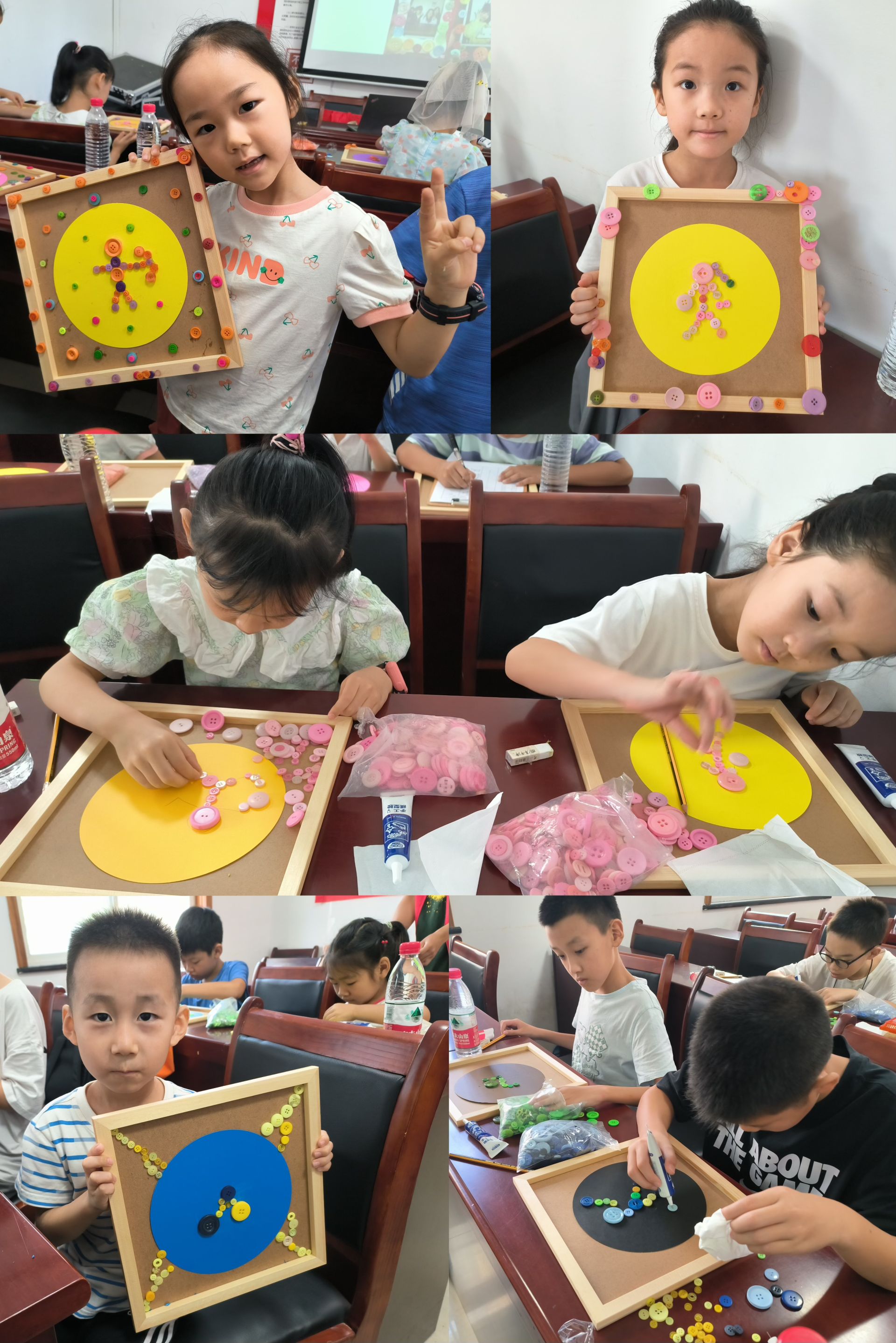 “没想到图标能以这样的形式表现出来,真有意思!”天天开心地对社工说道。看完视频孩子们对运动项目图标表现出热烈的兴趣,社工趁热打铁,拿出一张用纽扣做成的体育图标画,马上吸引了大家的目光,纷纷拿起材料开始自己的制作。