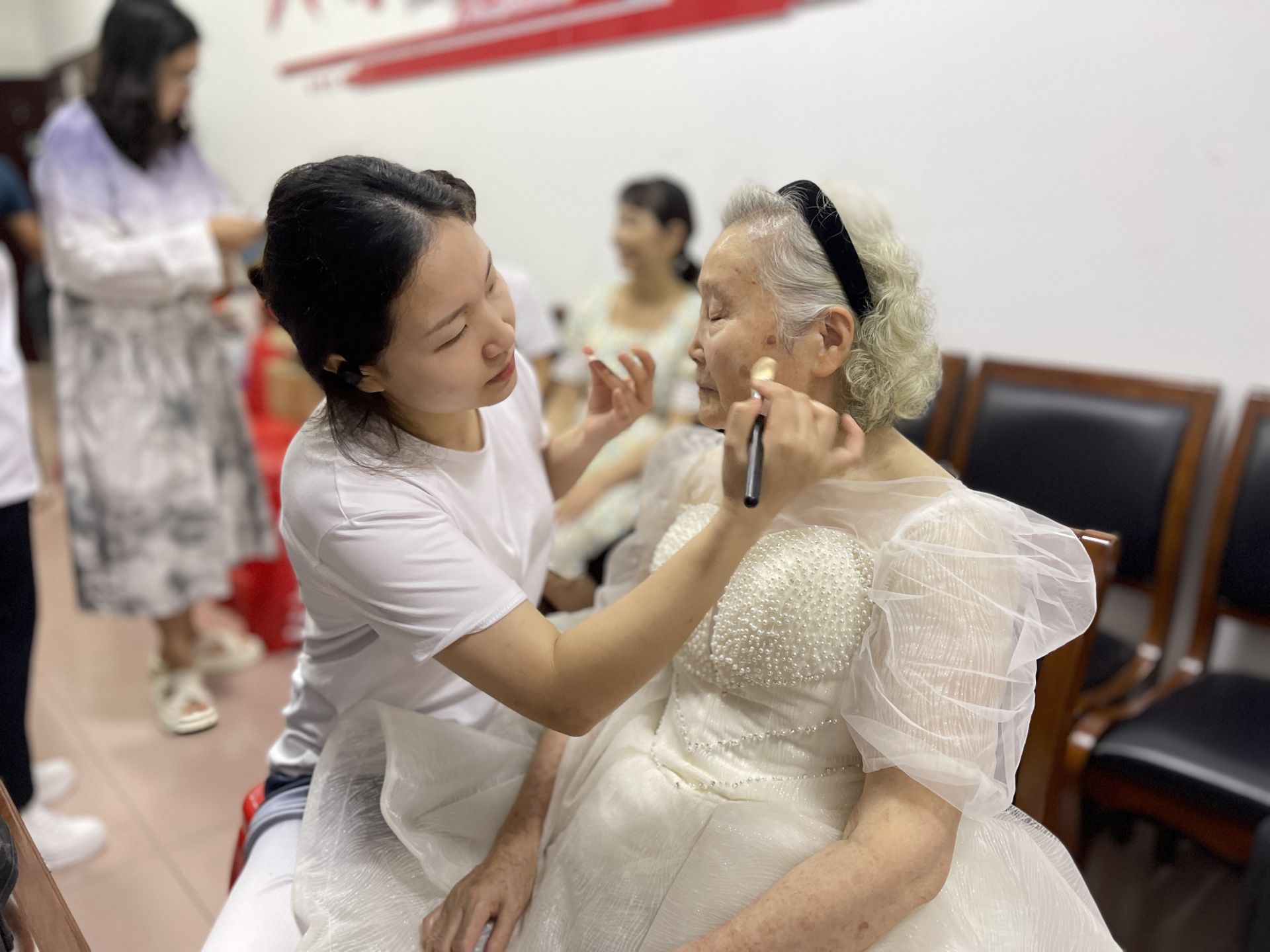 “一辈子都没穿过这么漂亮的婚纱,终于在书记的鼓励下穿了这么好的衣服,拍了这么美的照片,这是多么珍贵的经历啊!”83岁的居民彭奶奶止不住地夸道。9月17日,武汉市洪山区梨园街华电社区妇女之家在社区二楼活动室开展“定格幸福时光,携手与爱同框”全家福拍摄活动。此次活动共有华电社区最美家庭、平安家庭等优秀巾帼代表人物15组家庭参加了本次活动。