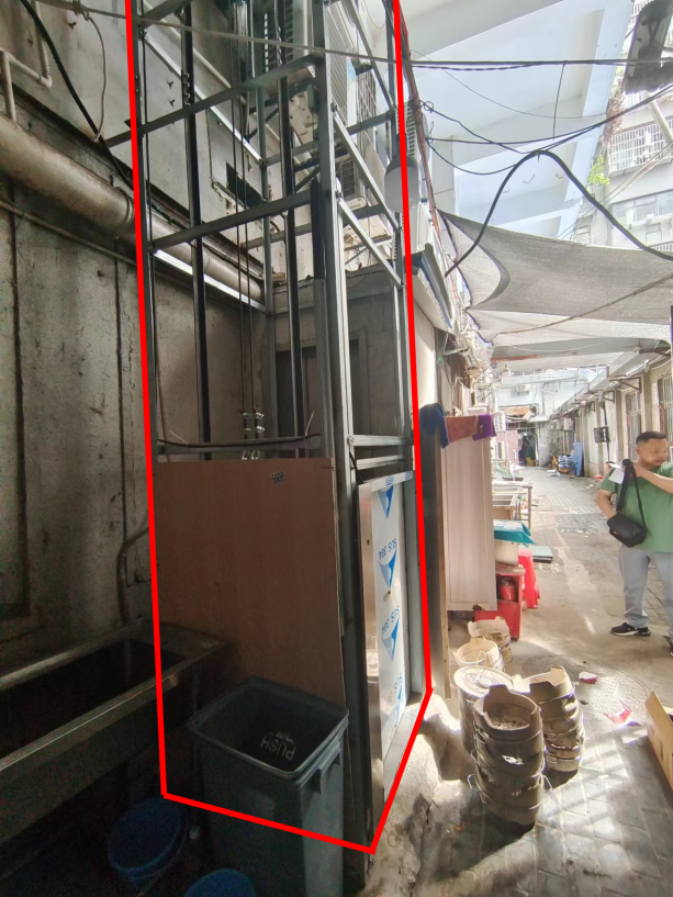 2023年上半年,武汉市江汉区花楼水塔街道老甫社区路长在江汉四路巡查发现,江汉四路两家火锅店各自在后厨外的消防通道违规搭建了杂物电梯。店家声称此杂物电梯仅用来传输菜品,没有危及生命的风险。