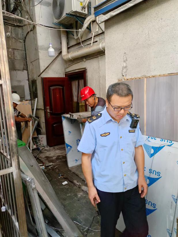 针对以上违章搭建,花楼水塔街道综合执法中心高度重视,执法队员联合街道平安建设办及老甫社区工作人员上门查看情况,对店主及购买安装情况进行调查,督促两家商户立即整改。起初,两家商户并不愿意进行整改,花楼水塔街道综合执法中心队员前后上门处理,劝导商户20余次,向商户说明,违章搭建不仅侵占公共空间,还影响老甫社区美观和安全,不间断督促两家餐饮门店进行整改。