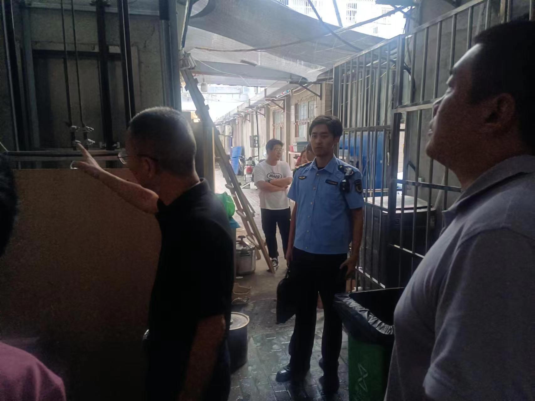 9月15日,两家商户组织施工人员对两处传菜电梯进行了拆除,执法队员赶到施工现场,嘱咐施工工人注意安全,督促商户及时清理建筑垃圾,协助完成了拆除。