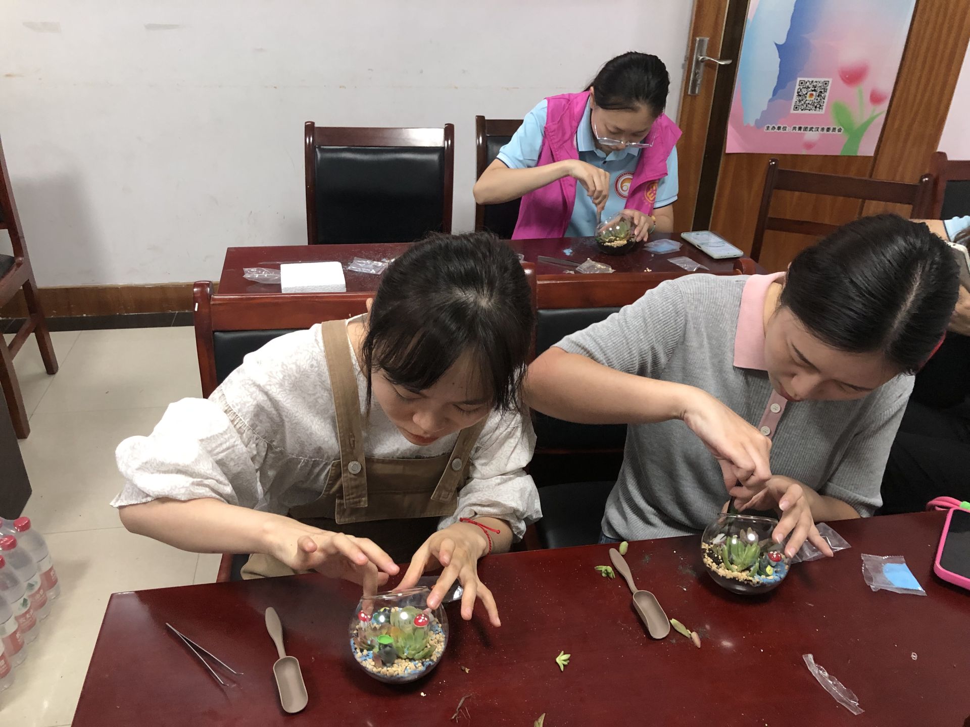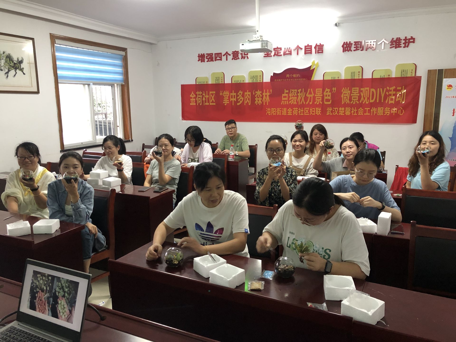 落叶瑟瑟,片片凉意,桂花香中氤氲着早秋的气息,9月20日,武汉经开区沌阳街道金荷社区妇联开展“掌中多肉‘森林’,点缀秋分景色”微景观DIY活动。