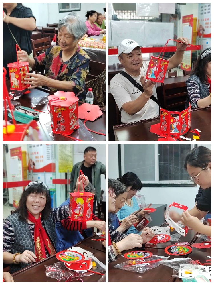 为了庆祝这个盛大的节日,支农社区联合怡居康养老服务中心举办了一系列丰富多彩的活动。有DIY月饼,手工制作灯笼、猜灯谜等活动。