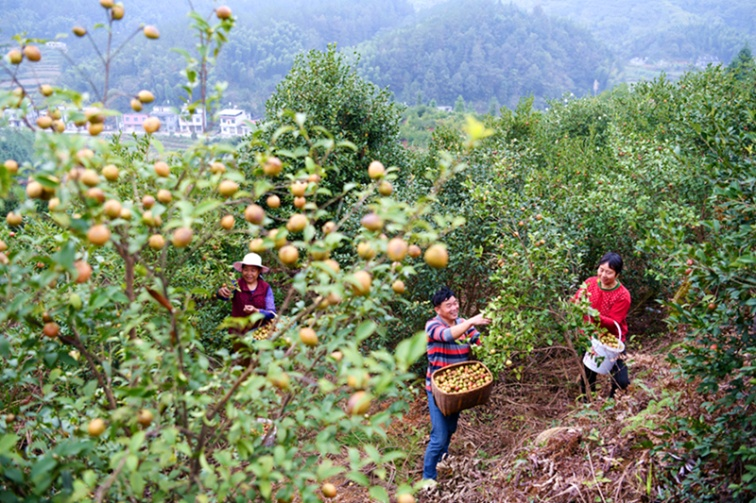 通城县地处幕阜山区,是湖北省油茶主产区。近年来,通城县不断改良油茶品种,推广高效实用技术,扩大油茶种植面积,扶持龙头企业,进行精深加工,让油茶果变身富民强县“金果果”,给乡村振兴“加油”。目前,全县油茶林总面积发展到32.5万亩,油茶企业、专业合作社和大户300多家,年综合产值20亿元。