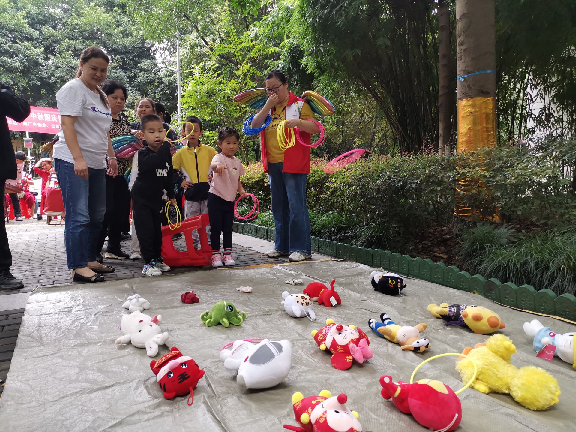 2023年9月24日上午,随着钟家村艺术团喜庆的大鼓“咚咚”敲响活动正式开始,艺术团热闹的演出唱响了庆祝新中国成立74周年和廉政新风的旋律。活动现场的互动游戏吸引了很多小朋友排队体验,有奖问答灯笼下站满了人;套圈那边一阵一阵的欢呼声庆祝着套中了大奖;玩投壶游戏,还领到了公园管理中心(汉阳公园)送给居民们的小花。除了节目和游戏,物业公司还准备了爆米花和奶茶,边吃边喝边玩边学,欢乐不已。