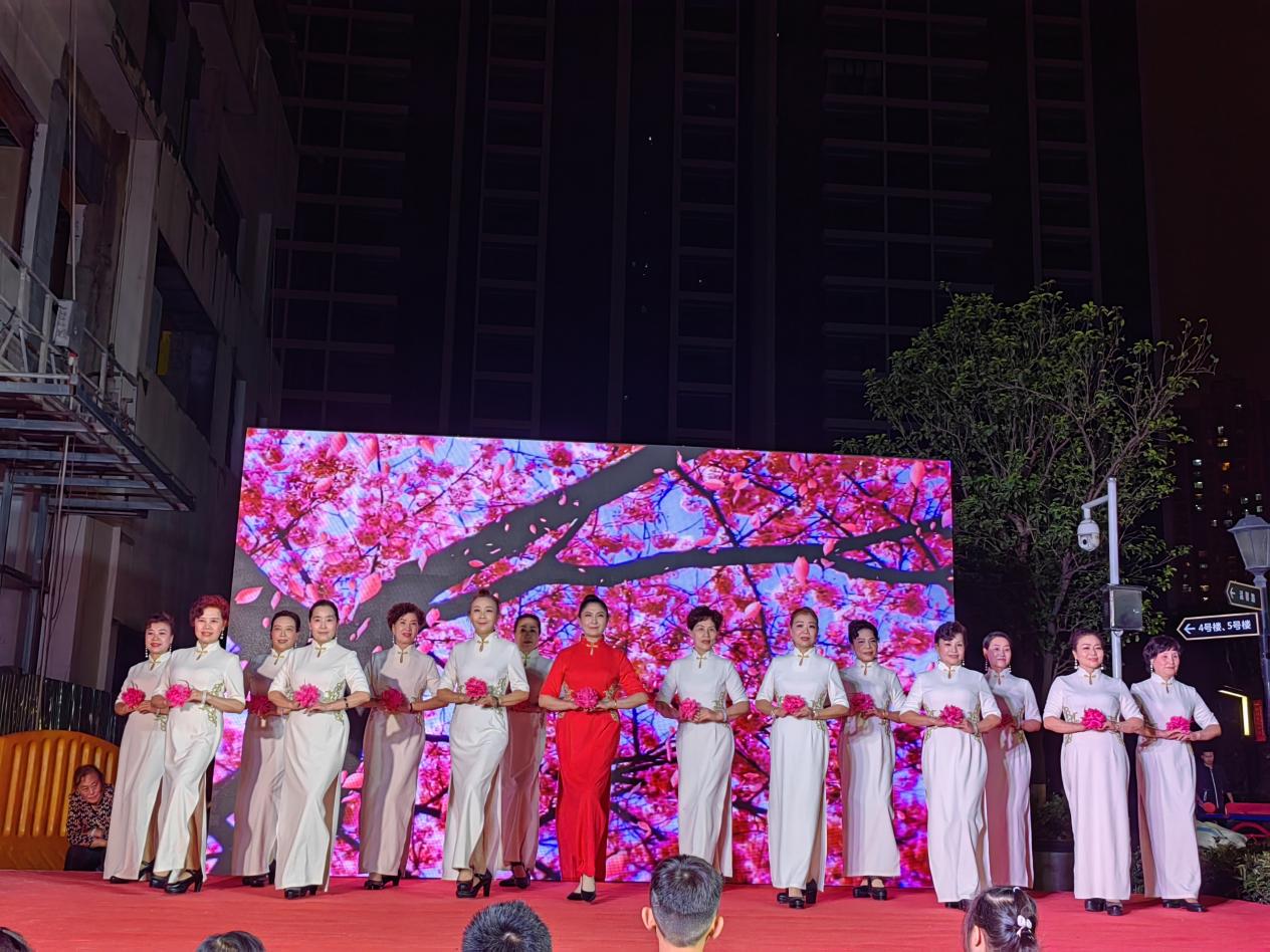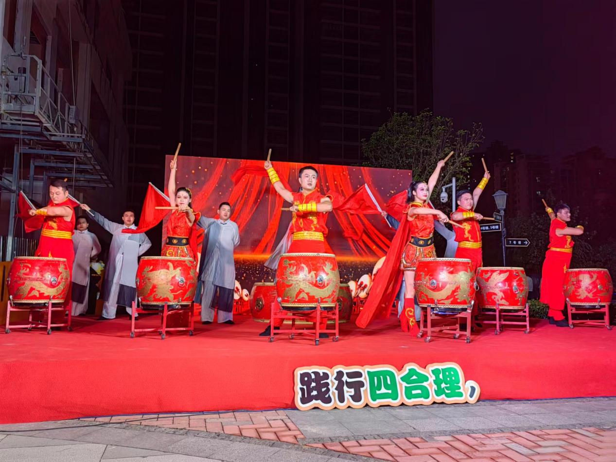 晚会一开场就吸引了大量居民驻足,现场一时热闹非凡。活动环节丰富多彩,有振奋人心的水鼓舞表演,激昂的鼓点仿佛敲响在每个人的脑海中;也有灵动可爱的小朋友献上的舞蹈,青春活泼的氛围感染每一个人;还有社区退休的叔叔阿姨们歌唱祖国,为祖国繁荣富强奋力拼搏的爱国之情喷涌而出。