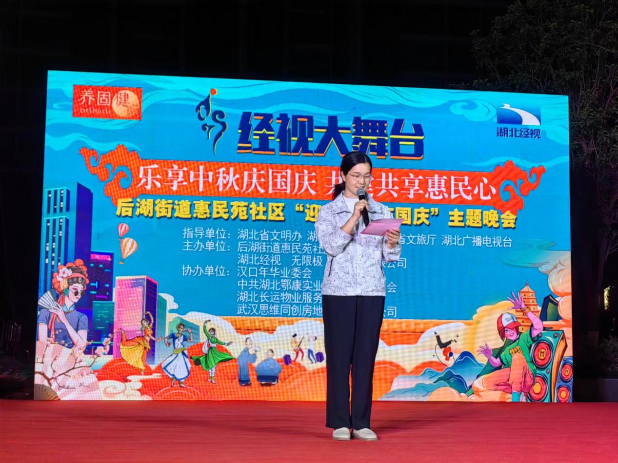 金秋九月,皓月银辉,伴随着暑热的退去,2023年中秋国庆双节即将到来。在这个万户团聚、乐享佳节的幸福日子里,武汉市江岸区后湖街道惠民苑社区携手湖北经视《经视大舞台》于9月24日共同举办了“乐享中秋庆国庆,共建共享惠民心”中秋国庆大型文艺晚会活动。活动以共享共建为主线,不仅邀请了才华横溢的社区居民代表进行表演,还有小区业委会、物业公司和共建单位的大力支持,为广大社区居民共同献上一场精彩绝伦的文化盛宴。