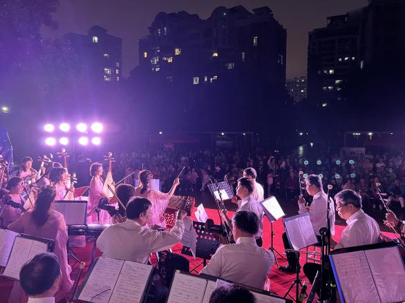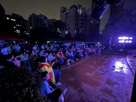 为热烈庆贺中华人民共和国74周年华诞,9月23日晚,在濛濛细雨中拉开了武汉市洪山区珞南街道丽岛花园社区“喜迎盛世华诞 共缔美好社区”文艺晚会的序幕。本次活动是由珞南街道丽岛花园社区联合湖北经视《经视大舞台》联合开展的,吸引社区近百名居民观看。
