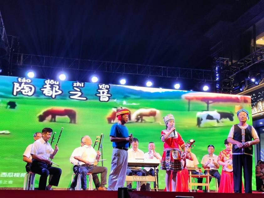 在与观众进行完互动小游戏之后,南湖壹号艺术团也带来了他们的节目——《民歌联唱》乐队演奏。这一表演更是将现场气氛推向了高潮,台下居民观众跟随着表演者一起唱起了我们耳熟能详的民歌,在歌唱声和欢呼声中大家都感受到了浓浓的节日氛围。在这一刻,在场所有居民在尤李社区这个大家庭中紧紧团聚在了一起。