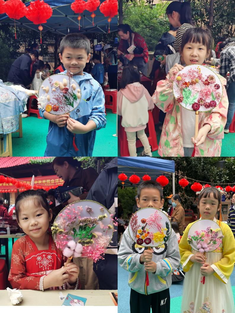 “好准啊!真厉害!”在游戏互动环节,射箭、投壶、夹弹珠等游戏让现场欢声笑语不断。参与者个个聚精会神,瞄准目标,或紧着筷子或手握着“箭”,眼疾手快,稳扎稳打,大家在轻松愉快的氛围中尽享竞技之乐。团扇手工DIY更是将活动推向高潮。小朋友们跟随专业指导,利用手工的材料,自由发挥,巧妙搭配,一朵朵干花、一片片绿叶在小小的团扇上展现出了独特风采,原本素白的扇面渐渐被点缀成一幅幅淡雅的精美作品。大家拿起自己亲手制作的团扇争相合影,兴高采烈,谈笑盎然。