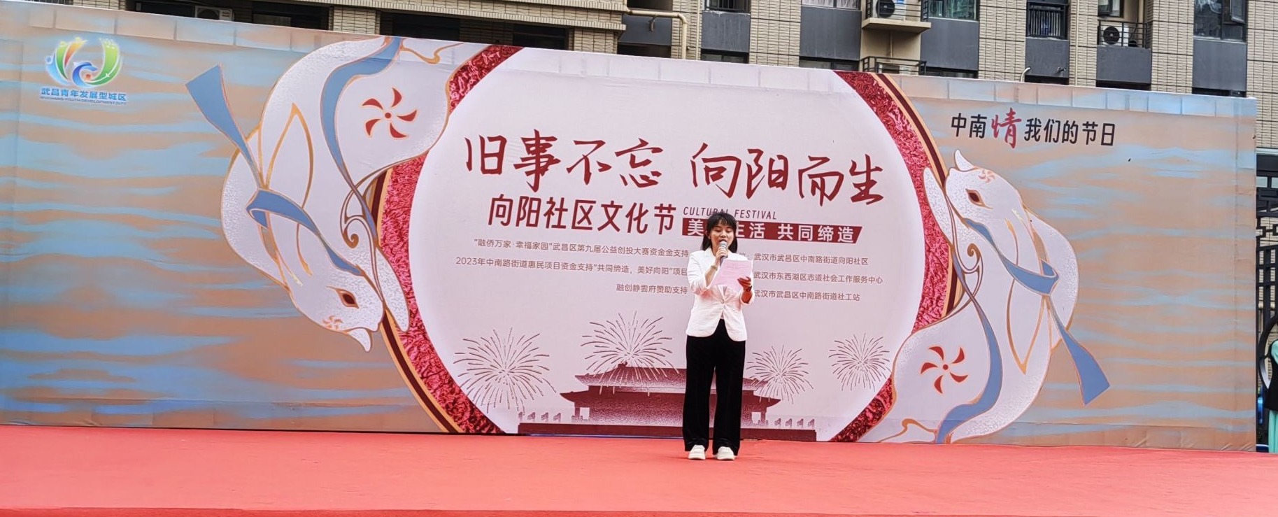 恰逢中秋国庆双节即将来临之际,近日,武汉市武昌区中南路街道向阳社区联合东西湖区志道社会工作服务中心在向阳佳苑A区广场举办“旧事不忘 向阳而生”向阳社区文化节暨国庆中秋大型文艺汇演活动,有近200位居民参与。