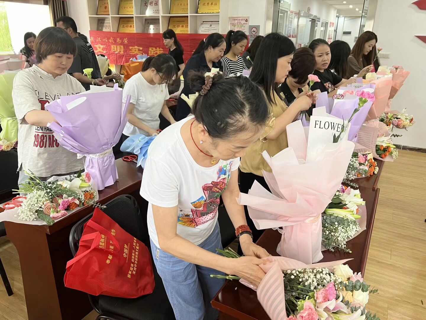 为丰富妇女群众精神文化生活,近日,结合文明实践日,武汉经济技术开发区沌阳街道阳光城社区妇联开展了一场别开生面的“金秋品花香 聚阳光迎国庆”主题插花活动,旨在提升辖区居民的艺术审美,同时也为社区营造出浓厚的节日氛围。