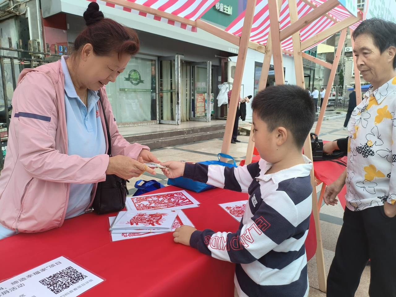 “任奶奶,我也要献一份爱心!”近日,武汉市武昌区南湖街华锦社区爱心公益市集“任阿姨剪纸”展台前,一位小朋友正将积攒的零花钱递上,购买了一张生肖剪纸作品。并请任奶奶为其代为扫码转入省慈善总会“幸福家园”村社互助项目平台。