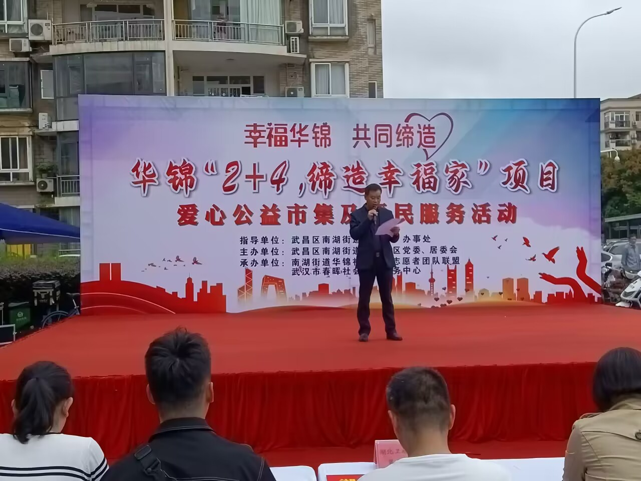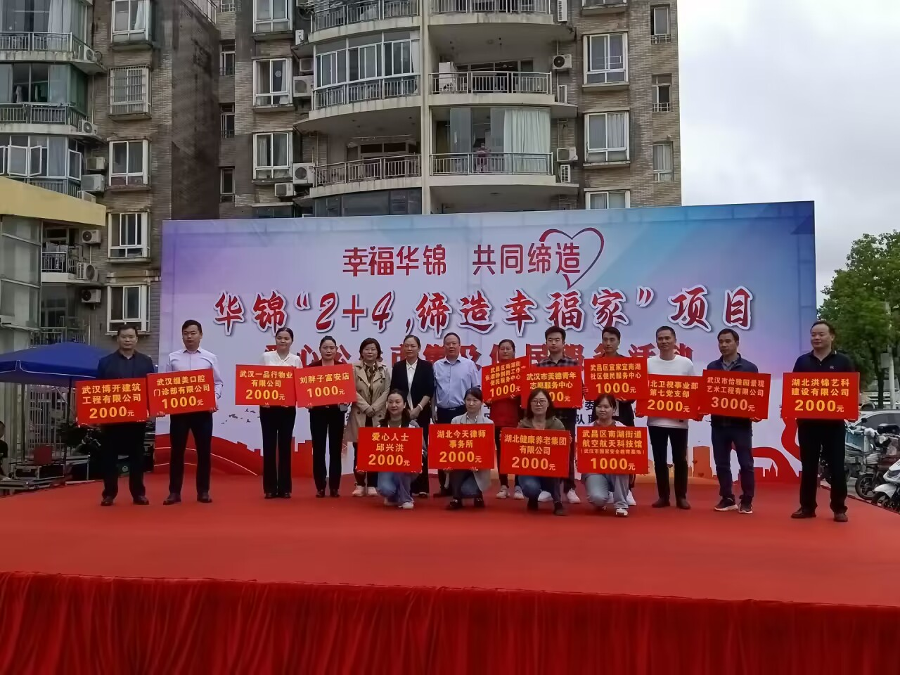 由武昌区南湖街党工委、办事处指导,南湖街华锦社区党委、居委会主办,华锦社区33支志愿者团队联盟、武汉市春晖社会工作服务中心承办的华锦社区“2+4,缔造幸福家”项目爱心公益市集及便民服务活动在华锦社区举行。项目开展公益基金募捐活动,得到辖区单位、经济组织、社会组织、爱心人士的积极响应,截至当天上午,已经筹集到公益资金30525.8元。