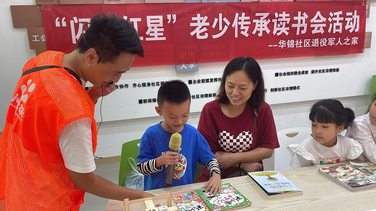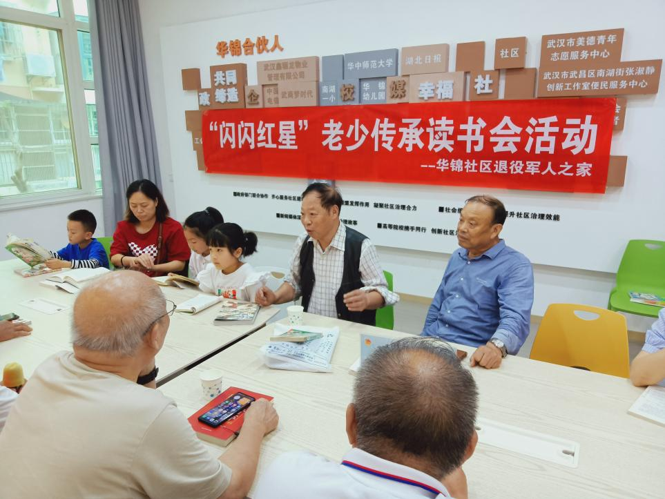 为弘扬中华民族传统文化,增强华锦社区退役军人、青少年的民族自豪感和归属感,营造和谐的文化氛围。9月24日,武汉市武昌区南湖街华锦社区退役军人之家特开展“闪闪红星”老少传承读书会活动,带领大家共同阅读社区共享空间图书,有效地挖掘青少年创新潜能,促进个性特长的和谐发展。推动社区阅读氛围,激发全民的读书热情,活跃社区文化,提高文学艺术修养和欣赏水平,形成全民爱读书、读好书、善读书的社会文化新风尚。